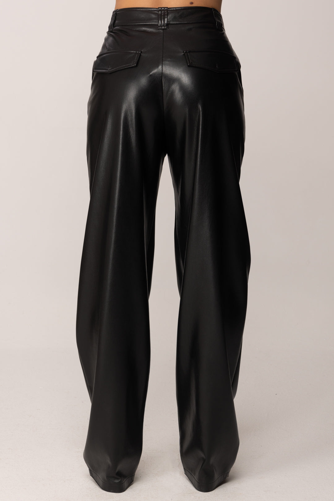 Riscalda il tuo look invece indossando questi pantaloni insieme al marrone e alle sue tonalità, o sorprenditi, infine, con un bel rosso da abbinare per le festività: da una serata in famiglia ad un festeggiamento outdoor, avrai un look femminile, classy e cozy al tempo stesso.Modello Panino Taglio lungo Tessuto spalmato effetto pelle Passanti per cintura Vestibilità slim 100%Poliestere | Spalmatura: 100%Poliuretano | Fodera: 100%Cotone Taglia modella: 40 Altezza modella: 170 cm Suggerimenti d’uso: da giorno, tempo libero, sera