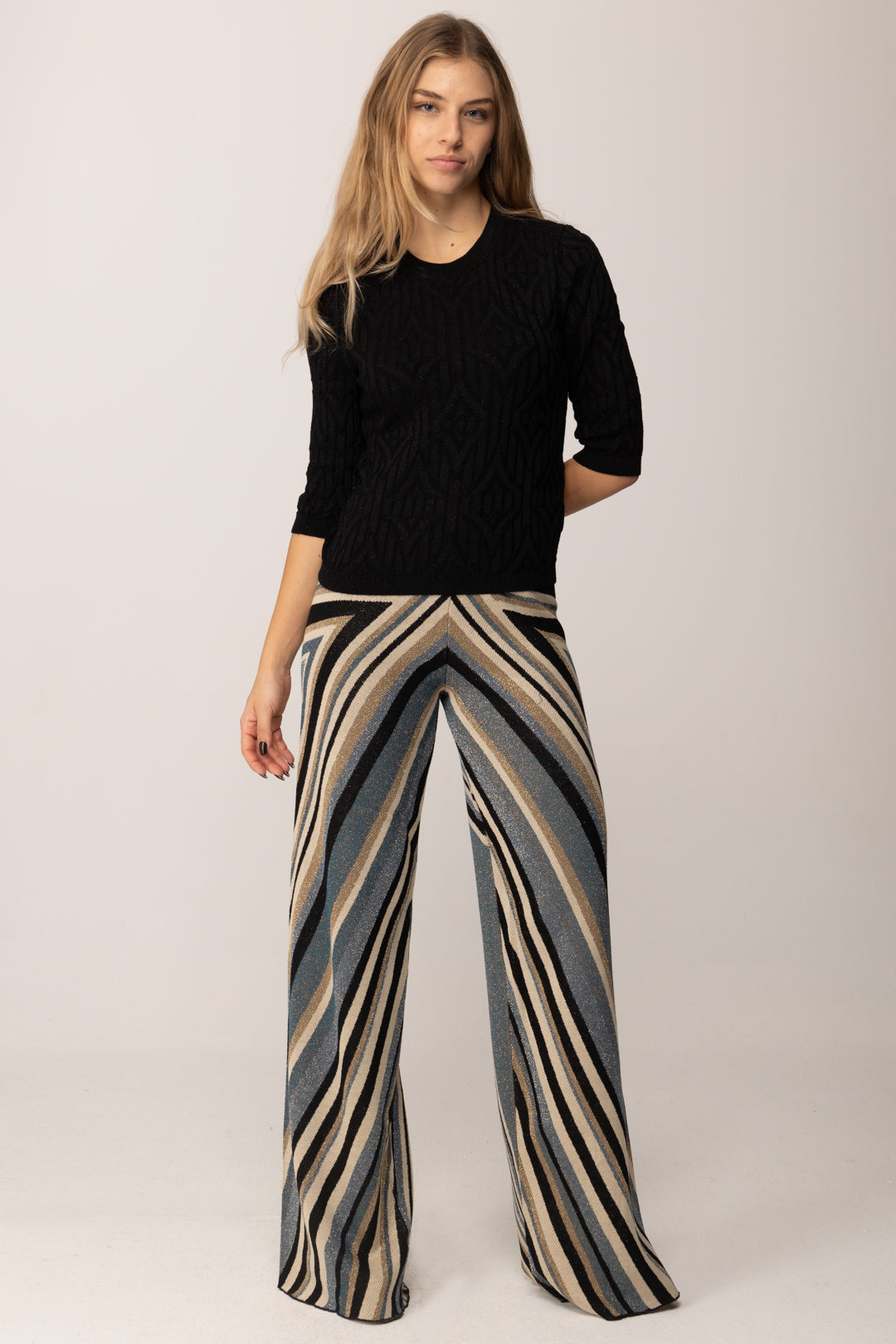 È il capo perfetto da indossare sotto un blazer o una giacca sartoriale, ma sa farsi notare anche da solo grazie alla texture in rilievo che cattura la luce in modo sottile. L’effetto finale è contemporaneo e femminile, con un tocco di brillantezza che lo rende adatto anche per la sera.