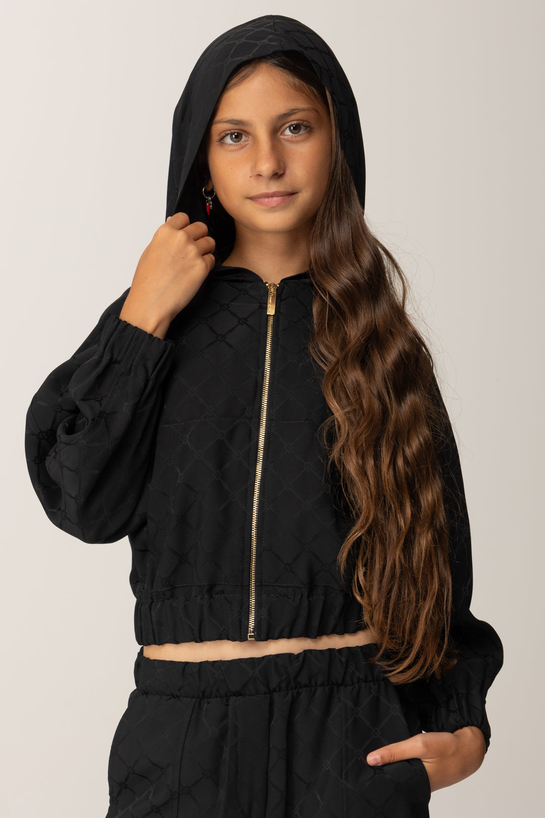 Perfetto per il tempo libero, con outfit casual e pratici, così come per la scuola, si abbina anche a look da sera non formali e da mezza stagione. Perfect match? Con il pantalone in stile jogging realizzato con le stesse caratteristiche, per un look un po' street perfetto per signorine dinamiche e modaiole.