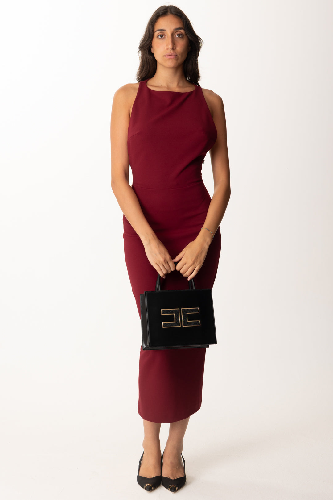Un abito perfetto per occasioni formali ed eleganti, che non richiede sforzo per essere completato con gusto. Sta bene con un tacco, che sia slingback, decolleté o sandalo classico, e una mini bag a mano o a tracolla, con un’acconciatura che valorizzi la particolarità del retro e orecchini che diano un colpo di luce all’insieme. Adatto anche ad una cerimonia, da completare se richiesto dalla circostanza con una stola morbida o un blazer dritto da appoggiare alle spalle.