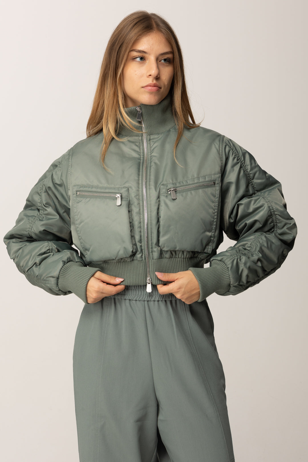 Piumino crop Orli a costine Tasconi sul petto Chiusura con zip doppio tiretto Composizione: 100%Poliestere ! Imbottitura: 100%Poliestere Taglia modella: 40 Altezza modella: 170 cm Suggerimenti d'uso: giorno, tempo libero, weekend fuori porta sporty-chic