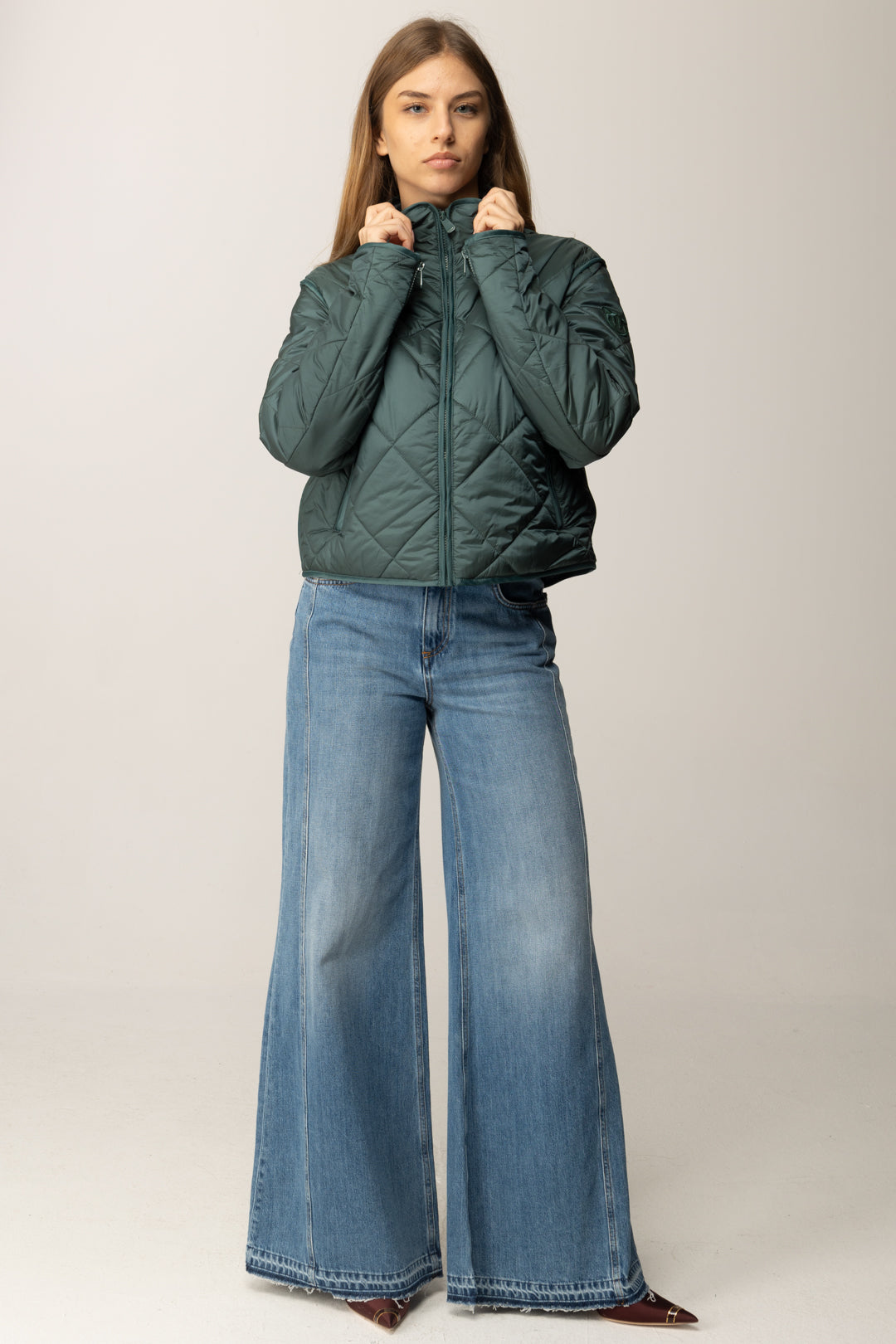 Sfrutta la sua essenzialità per giocare con gli accessori. Qualche esempio? Una tracolla con manico a catena per aggiungere una nota metal, una borsa a cui annodare un foulard per un tocco di colore, un cappello e degli orecchini particolari: trova e sperimenta tanti modi per dichiarare il tuo stile a partire da piccoli dettagli senza rinunciare alla praticità di un capospalla basico e passe-par-tout!Modello Gnocchi Rivestimento in tela tecnica trapuntata Maniche lunghe con zip al polso Vestibilità dritta Colletto alto 100%Poliammide | Fodera: 100% Poliestere | Imbottitura: 100%Poliestere Taglia modella: 40 Altezza modella: 170 cm Suggerimenti d’uso: giorno, tempo libero