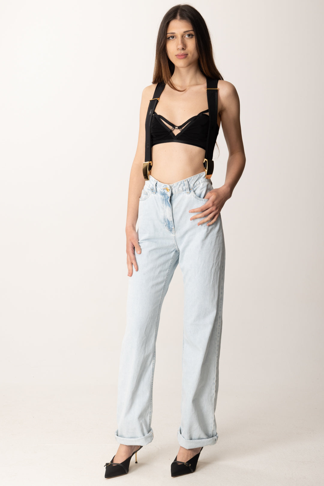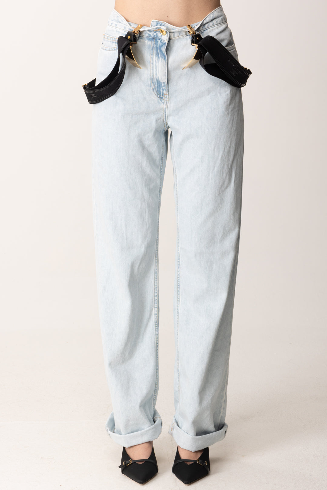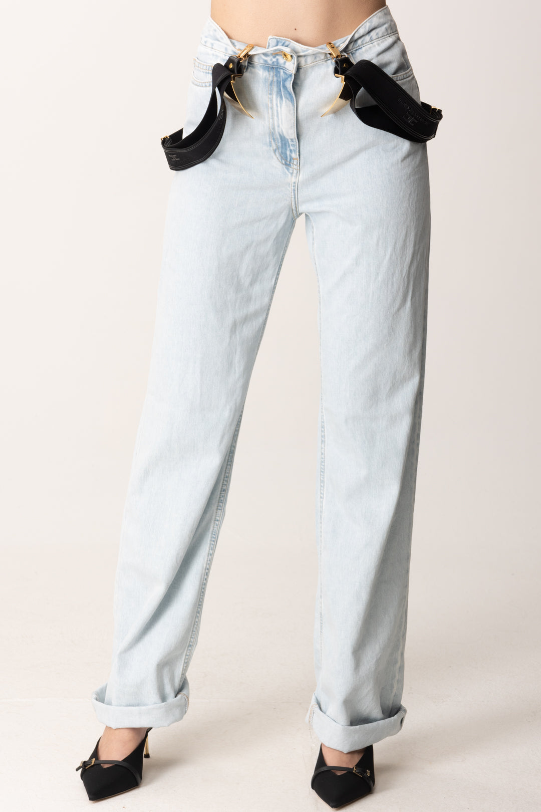 Jeans Elisabetta Franchi dal taglio dritto, impreziositi da bretelle statement per un look contemporaneo e di carattere. Perfetti con crop top o bluse voluminose, aggiungi sneaker o stivaletti per completare il look.
