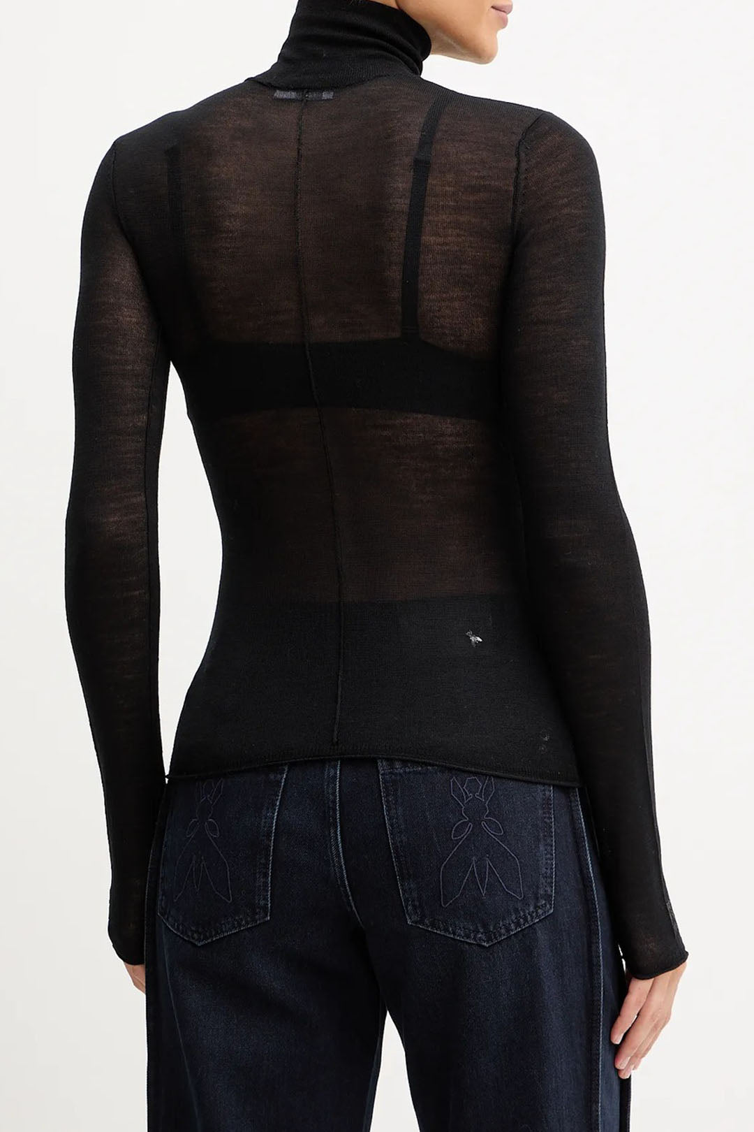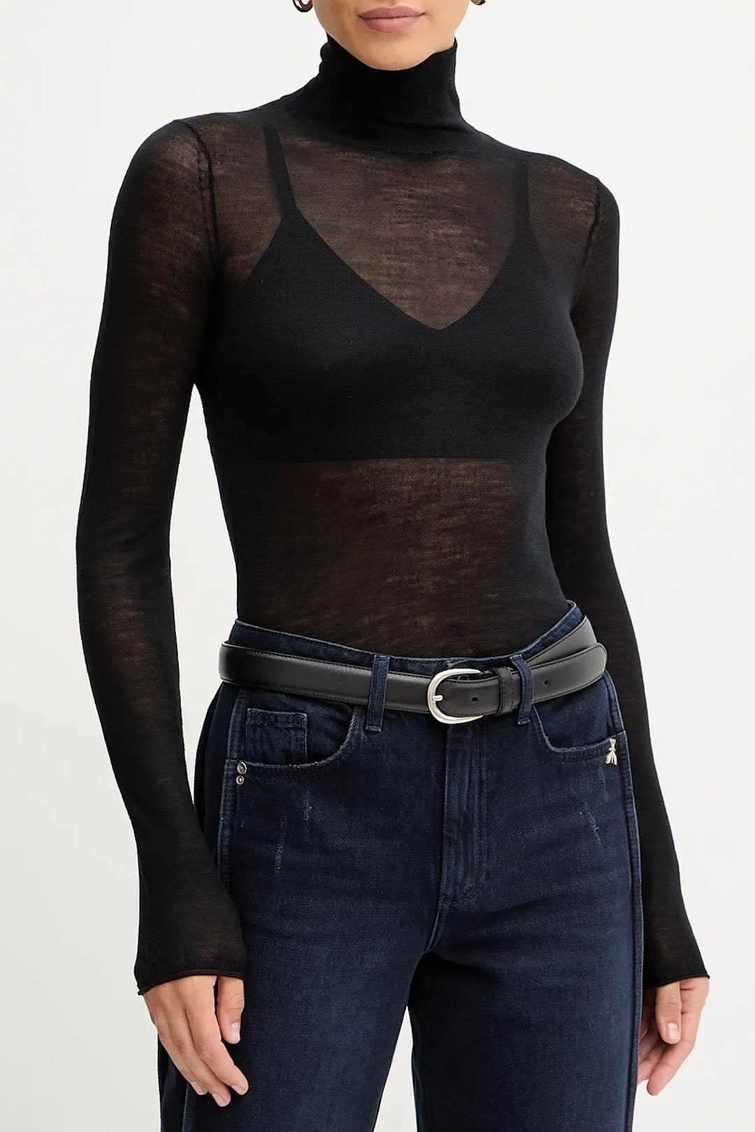 Il taglio aderente esalta la figura senza costringerla, mentre il colletto a dolcevita incornicia il volto con eleganza, rendendo questo modello ideale da indossare da solo o sotto blazer e capispalla strutturati. Le maniche lunghe con fit regolare completano il design con un tocco di sobria modernità.