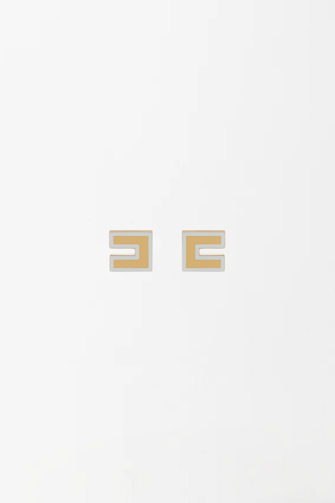 Semplici, grafici e iconici: questi orecchini Elisabetta Franchi rappresentano un omaggio allo stile essenziale del brand, ridotto all’elemento più riconoscibile – il suo logo – trasformato in protagonista assoluto. La forma quadrata e pulita, la finitura lucida in metallo dorato e l’effetto bicolor della cornice li rendono adatti a ogni tipo di abbigliamento, da quello più casual e quotidiano fino agli outfit più formali. Sono la scelta perfetta per chi ama i bijoux piccoli ma di carattere: la loro presenza è discreta ma d’impatto, ideale per sottolineare il viso con un tocco sofisticato ma moderno. Grazie alla chiusura a perno, si indossano con facilità e restano ben saldi all’orecchio. Da abbinare con un raccolto alto per metterli in risalto, oppure come punto luce discreto su look total black, blazer sartoriali o capi dalla linea minimale.