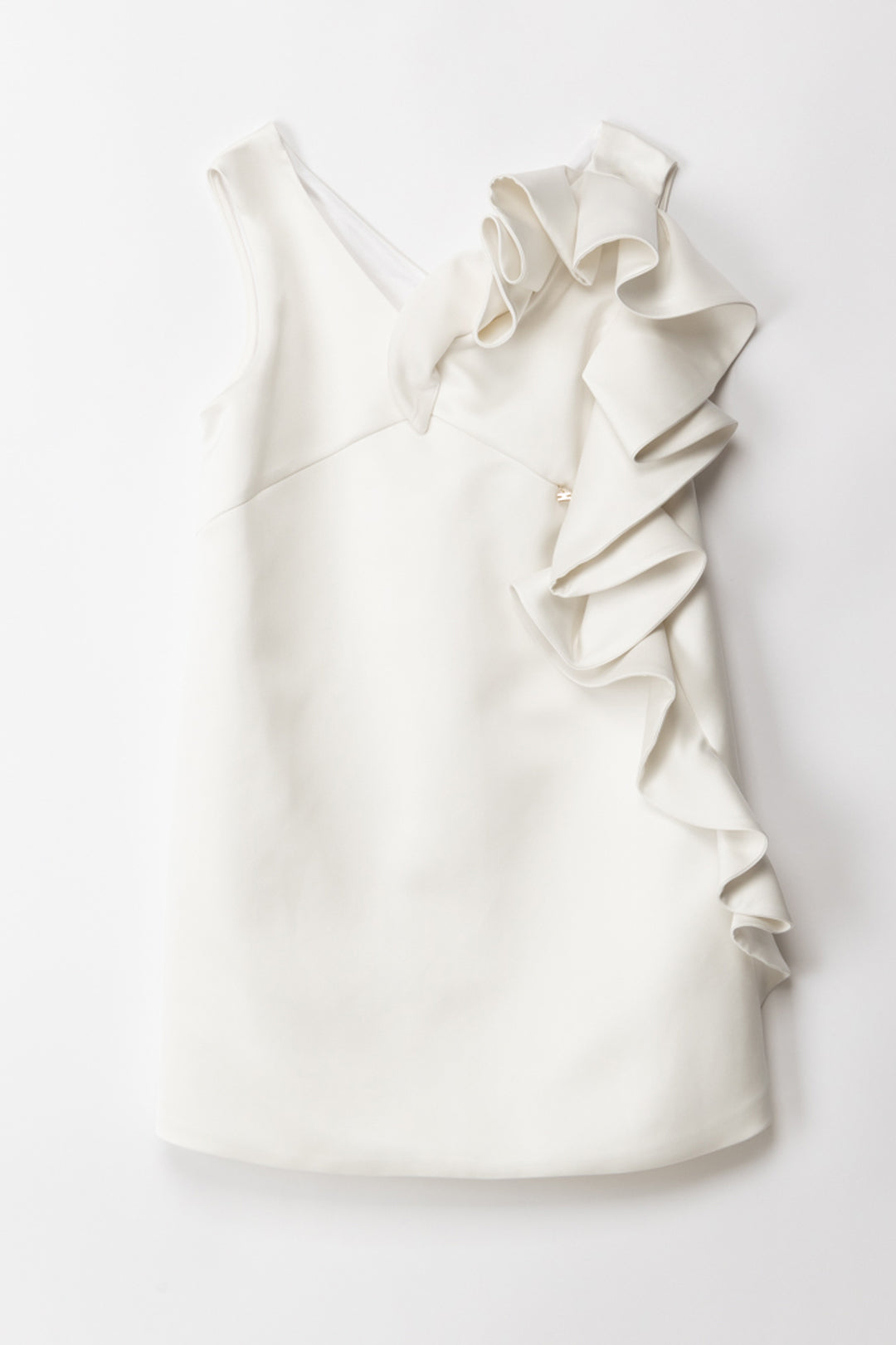 Eleganza semplice ed incantevole per questo abito Elisabetta franchi La mia Bambina realizzato in duchesse. Smanicato, lo caratterizza un’abbondante ruche laterale che dalla spalla scende lungo il fianco, e il piccolo logo charm frontale che identifica subito la maison di tanta bellezza. Ballerine o sandaletti per completare il look con altrettanta grazia.