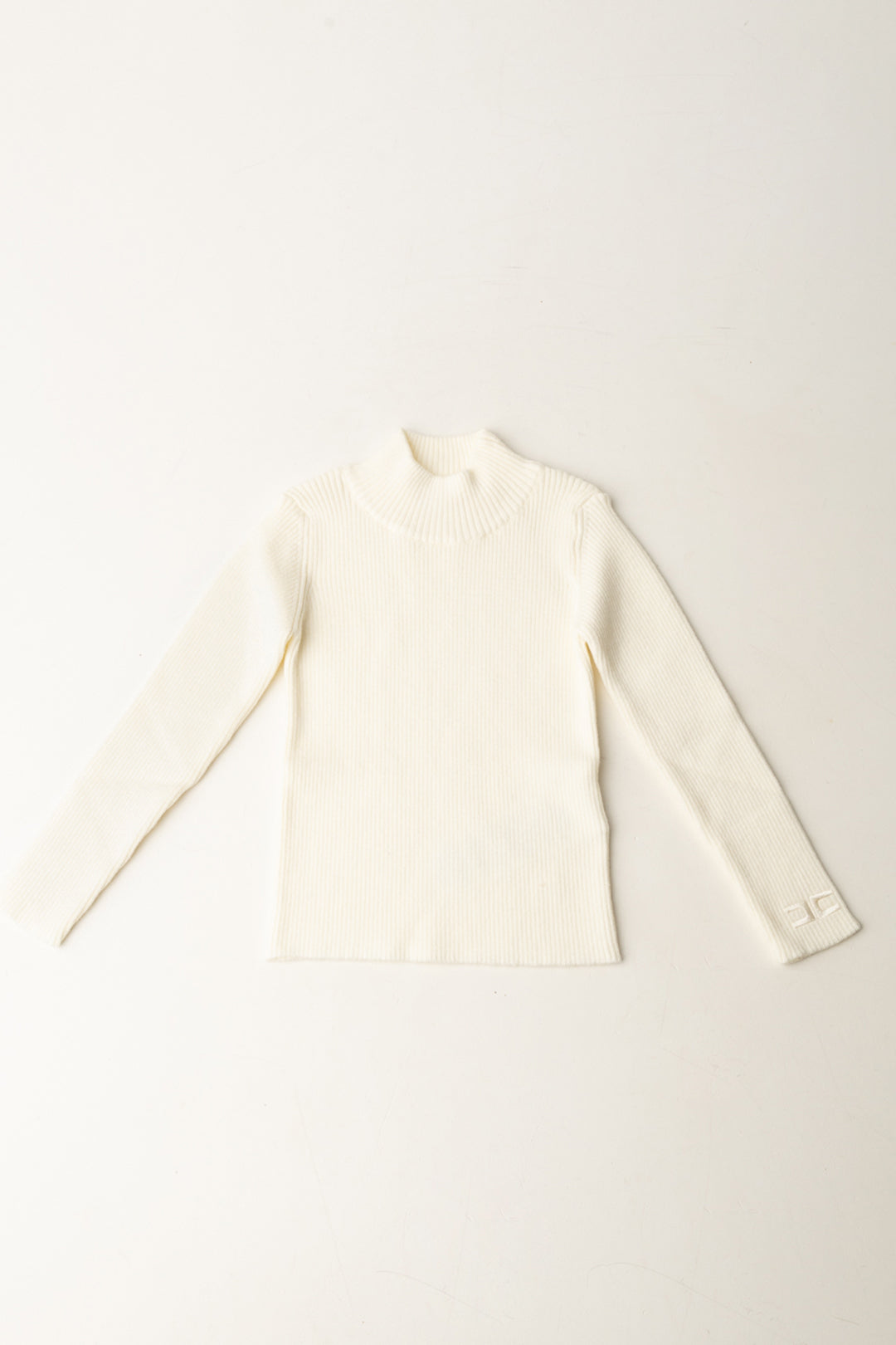 Un capo essenziale che ti arricchisce di tutte le comodità di un capo versatile e chic: un dolcevita Elisabetta Franchi La mia Bambina è realizzato in maglia a costine, morbida e confortevole. La linea slim con collo alto e maniche lunghe lo rende perfetto da indossare nei mesi più freddi anche in outfit con layering, mentre il delicato ricamo logo sul polso aggiunge un dettaglio distintivo ma discreto.