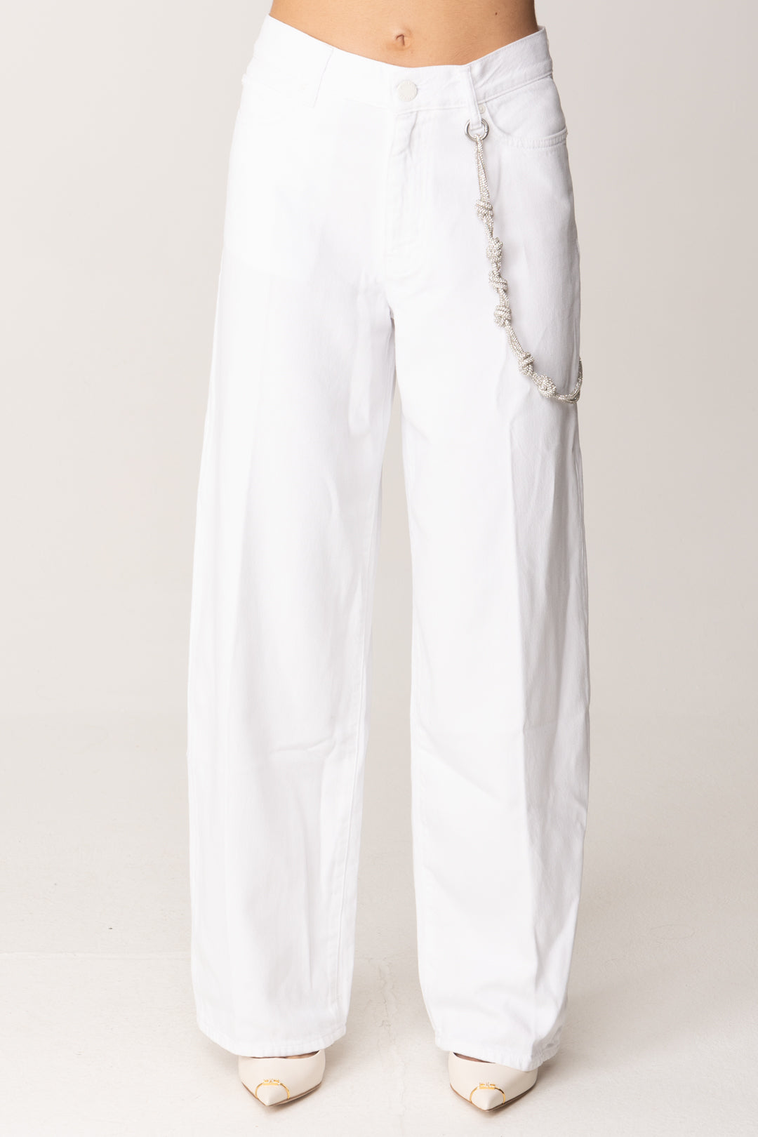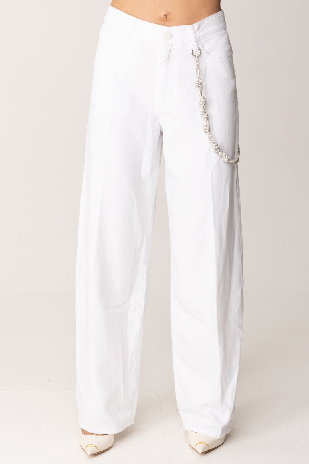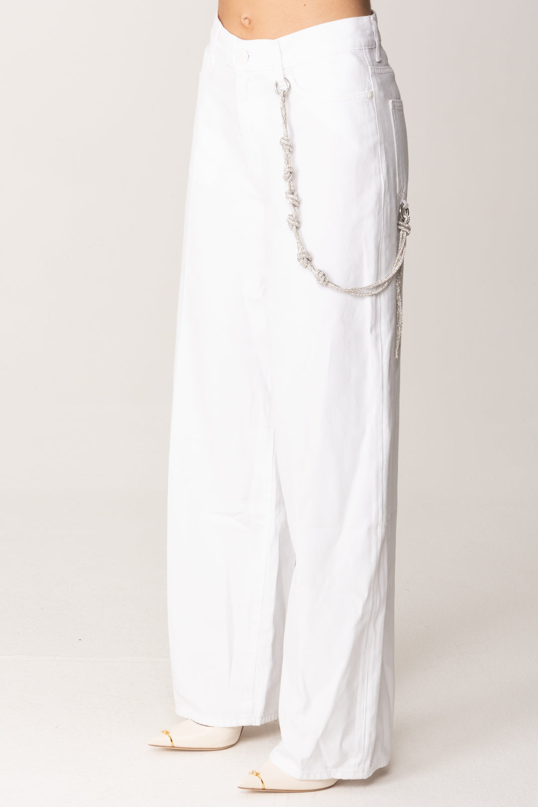 Tocchi glam per questi Pantaloni Pinko a palazzo, arricchiti da una catena decorativa ultra luminosa che aggiunge un tocco glamour finale. Ideali per outfit monocromatici total white o in contrasto con capi audaci.