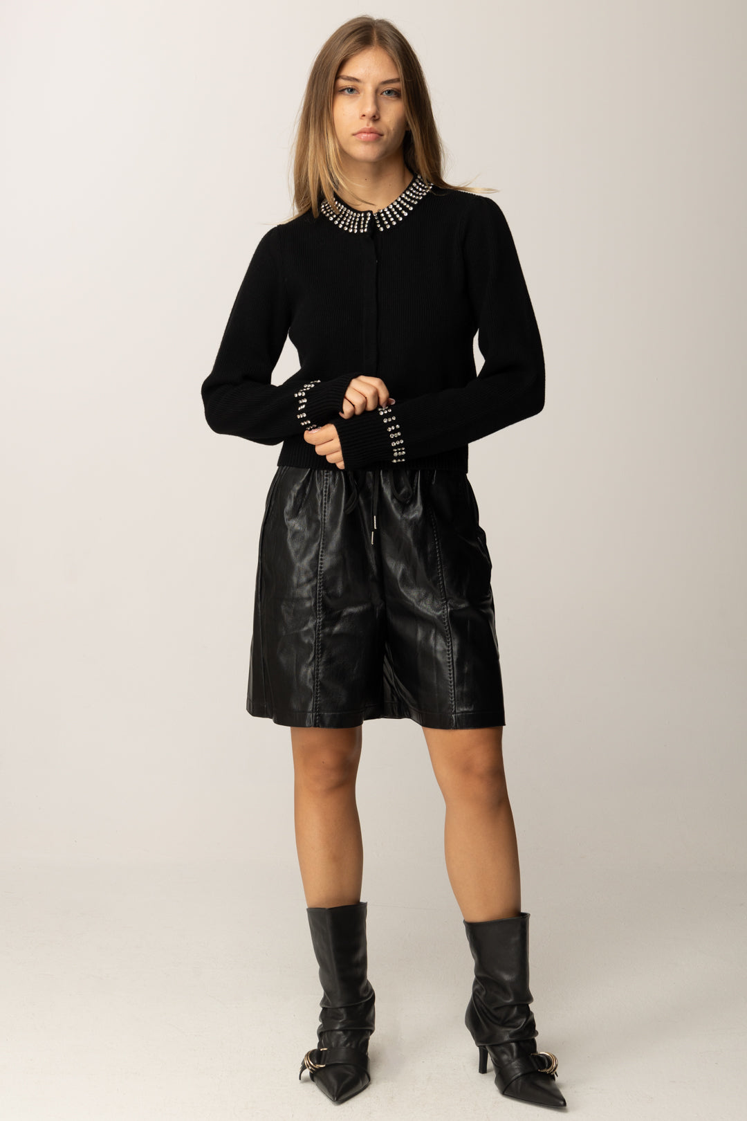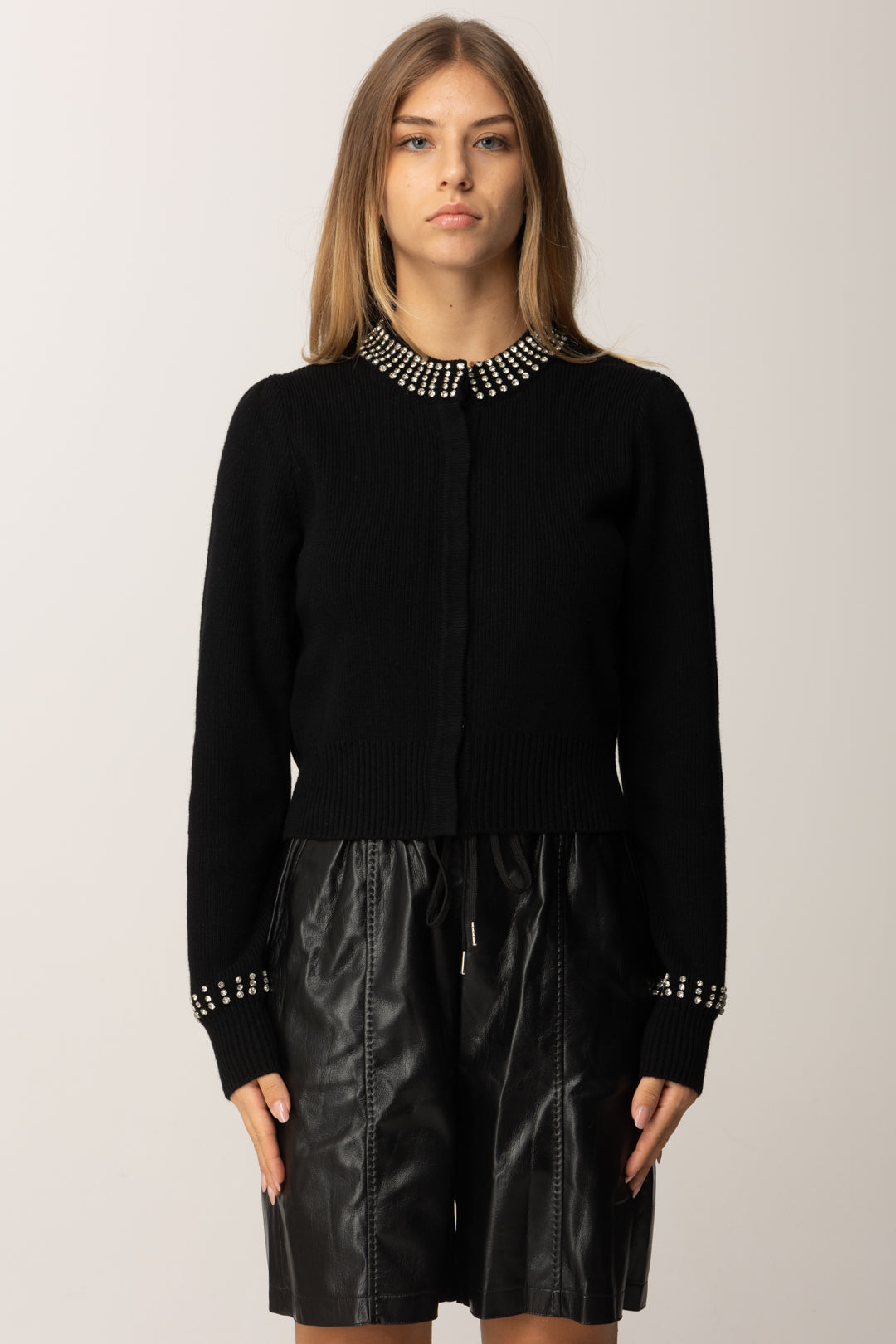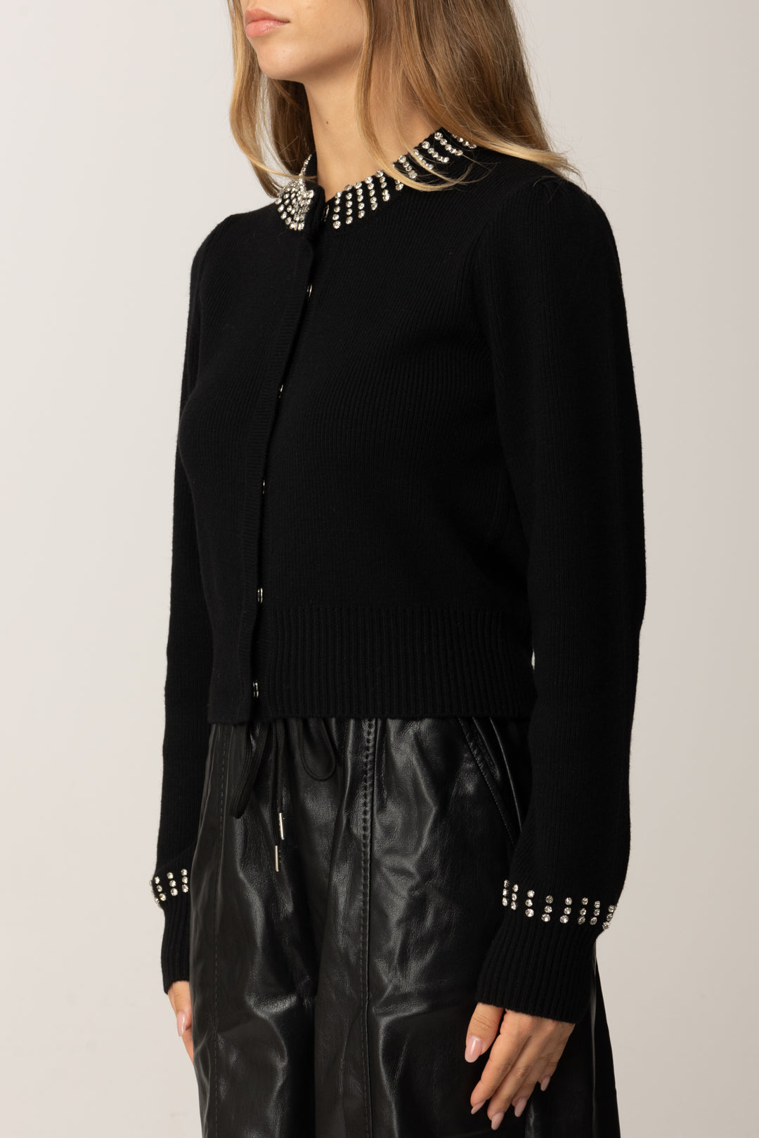 - Girocollo e polsini con strass applicati