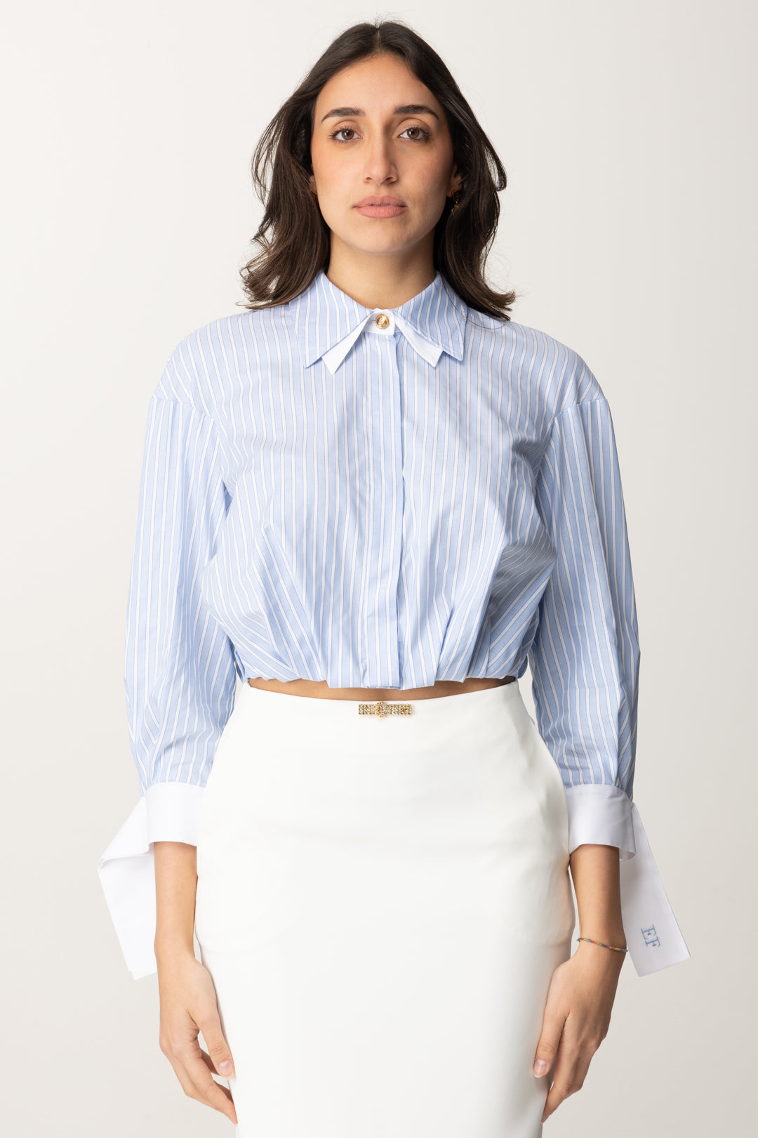 Camicia Rigata Crop con Fiocco Sul RetroOXFORD/BIANCO