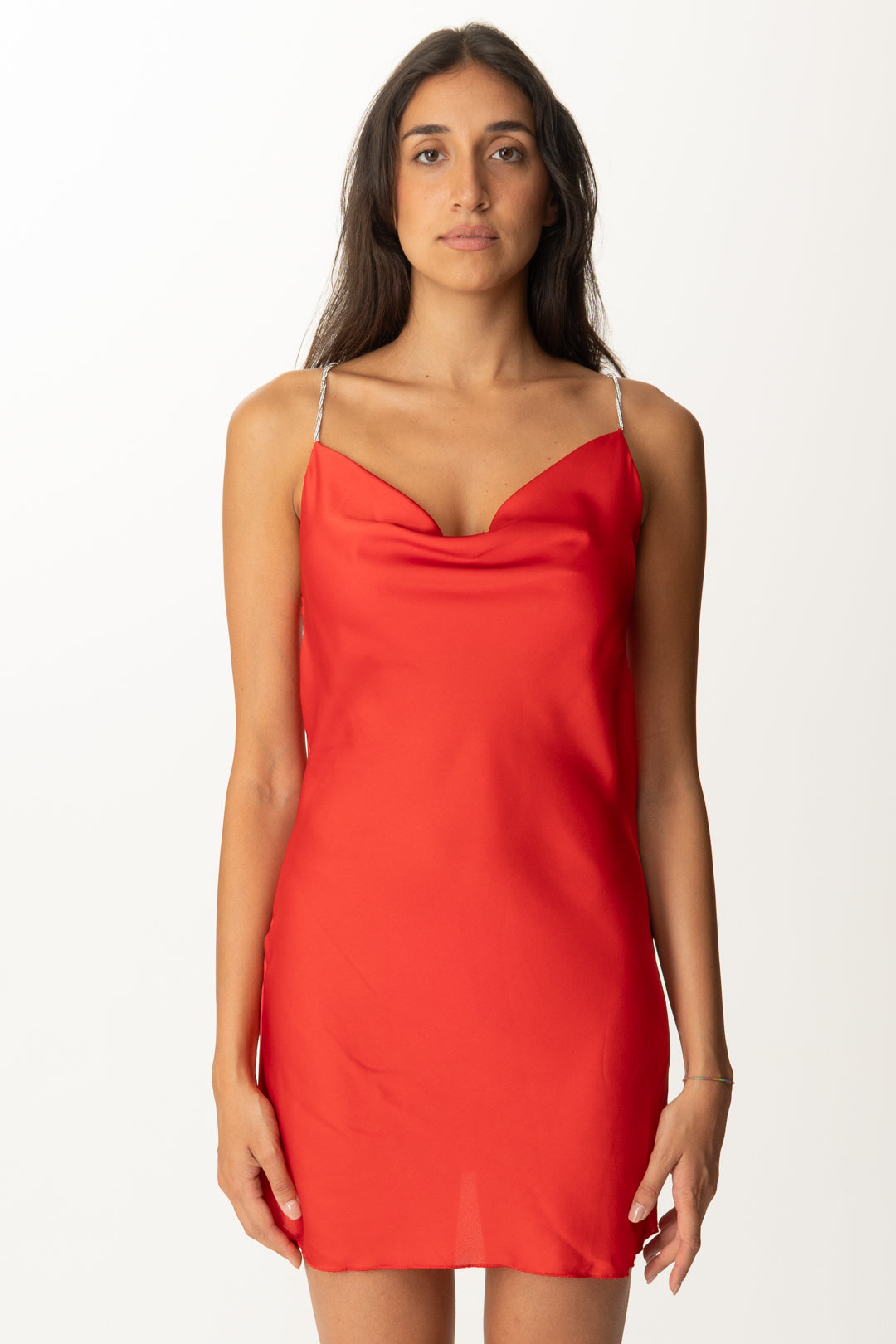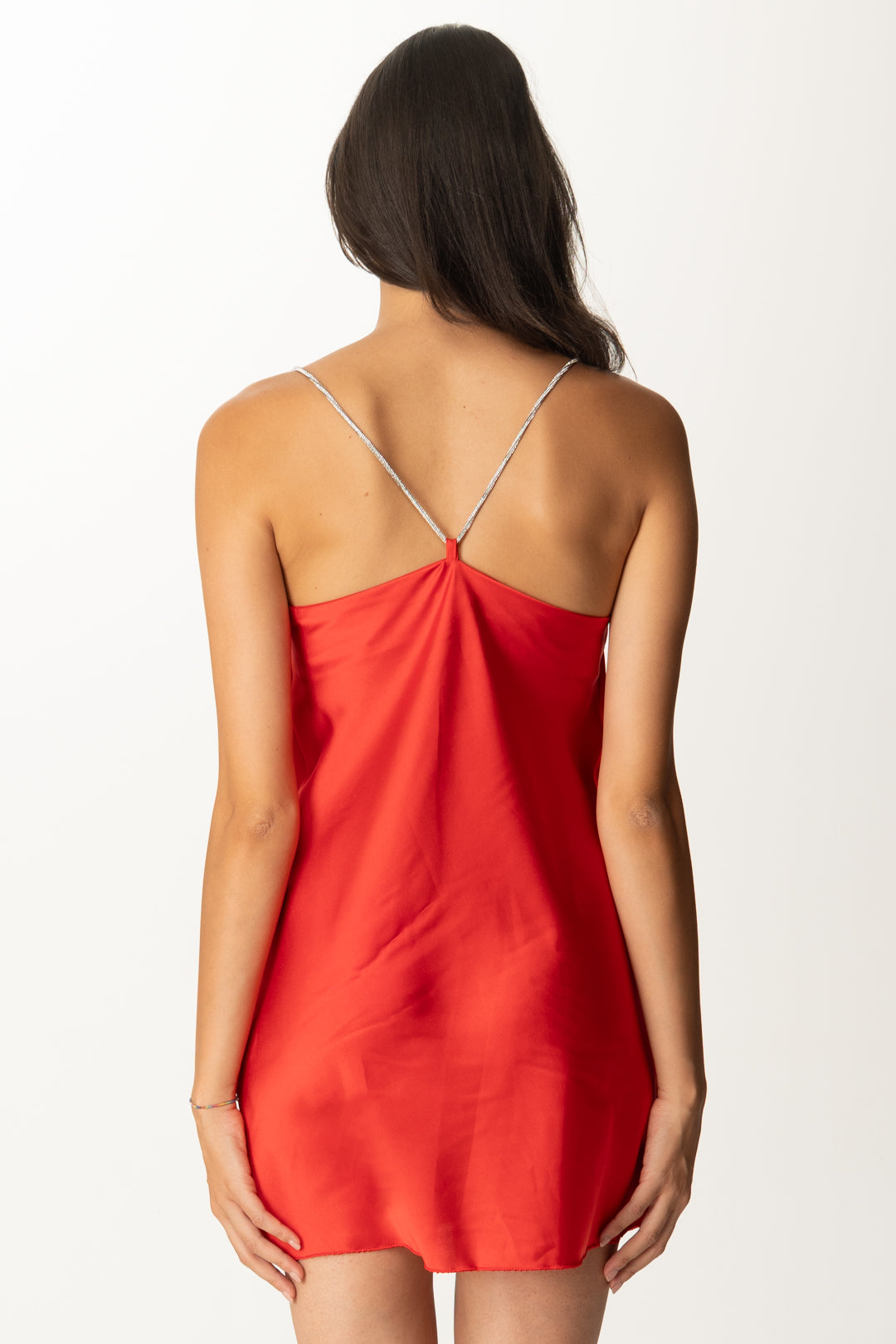 Se ami i modelli in stile lingerie, questo mini abito Khloè Femme ha anche un dettaglio in più per farsi notare: un piccolo “eccesso” che impreziosisce un design essenziale, ovvero le bretelle in strass, che aggiungono luce al tuo outfit creando anche una interessante V sul retro che enfatizza la linea delle spalle. Taglio corto, realizzato in satin dalla vestibilità dritta (non elasticizzato sulla silhouette), sarà una nota frizzantina ed elegante per le tue serate estive.