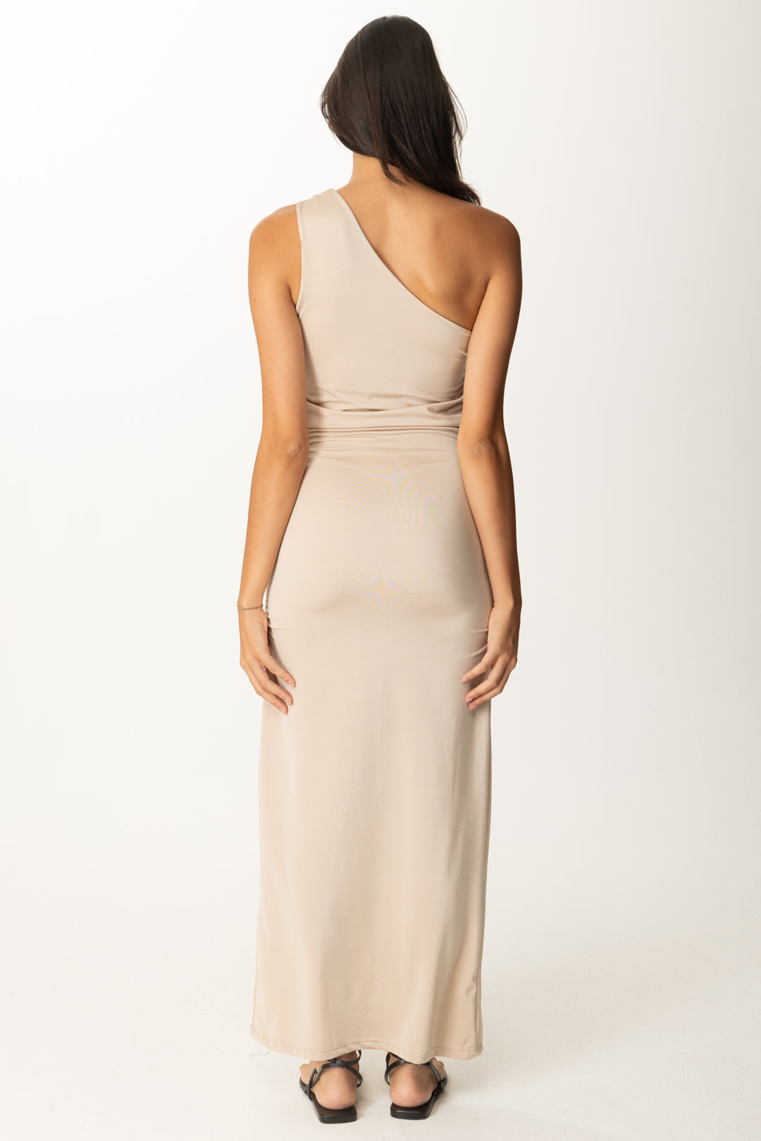 Schlichtheit und Charme für diesen Vorschlag eines Khloè Femme langen Kleides, das eine Reihe klassischer Elemente für ein Design vereint, das wie für deine Silhouette entworfen wirkt: strategische Drapierungen an der Seite, tiefer seitlicher Schlitz, Ein-Schulter-Top mit goldenem Accessoire und schließlich eine schöne, eng anliegende Passform, die deiner Figur in all ihren Formen folgt.