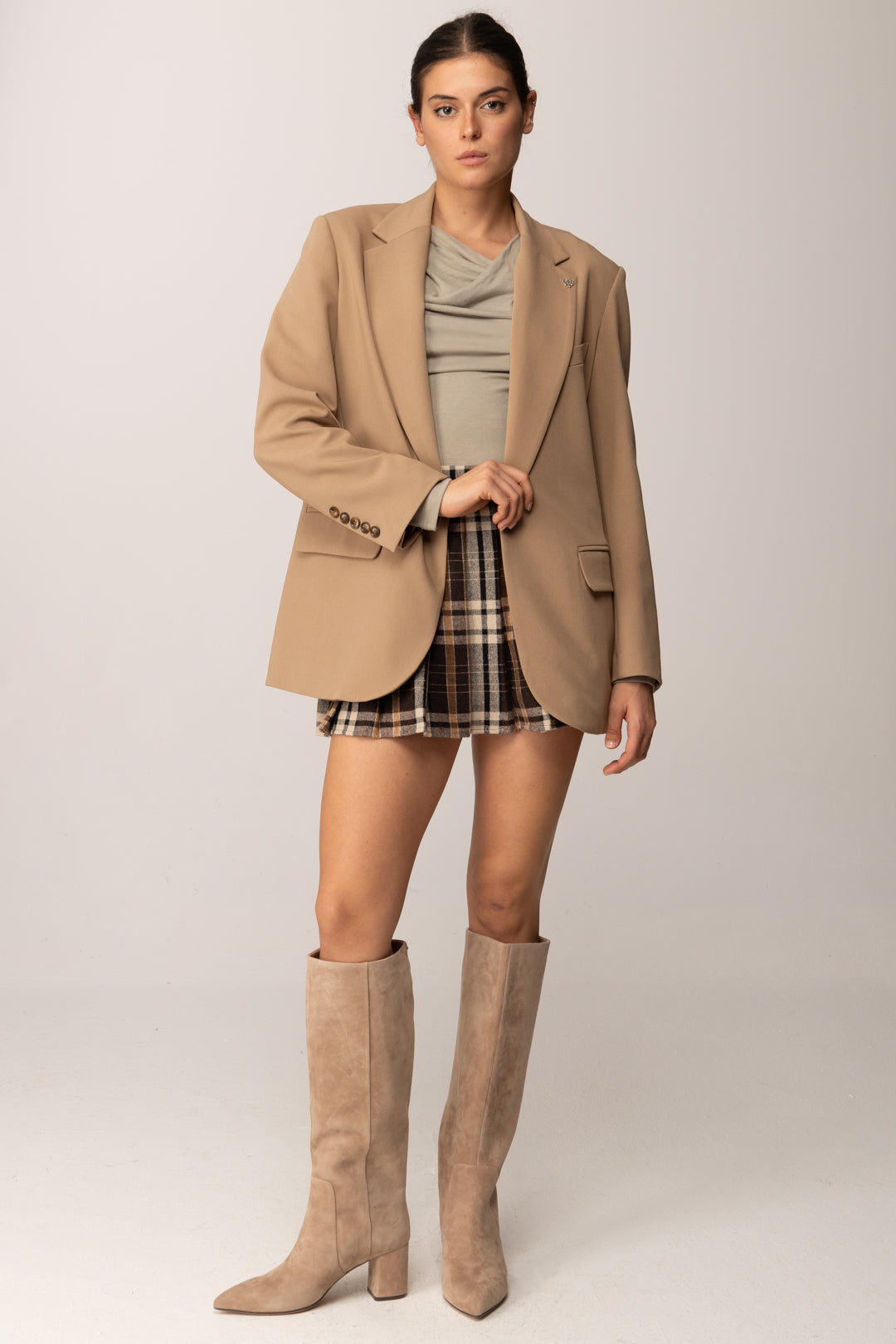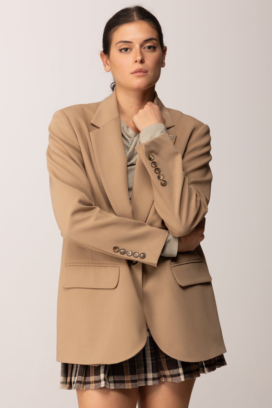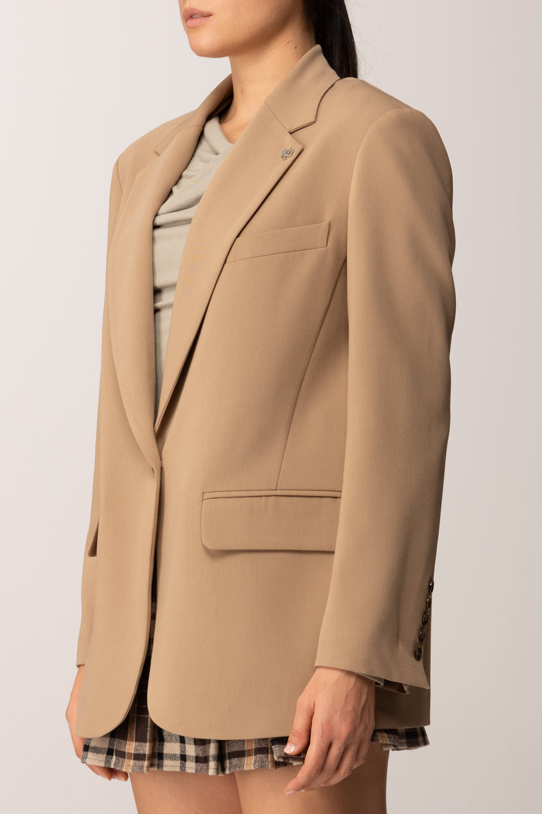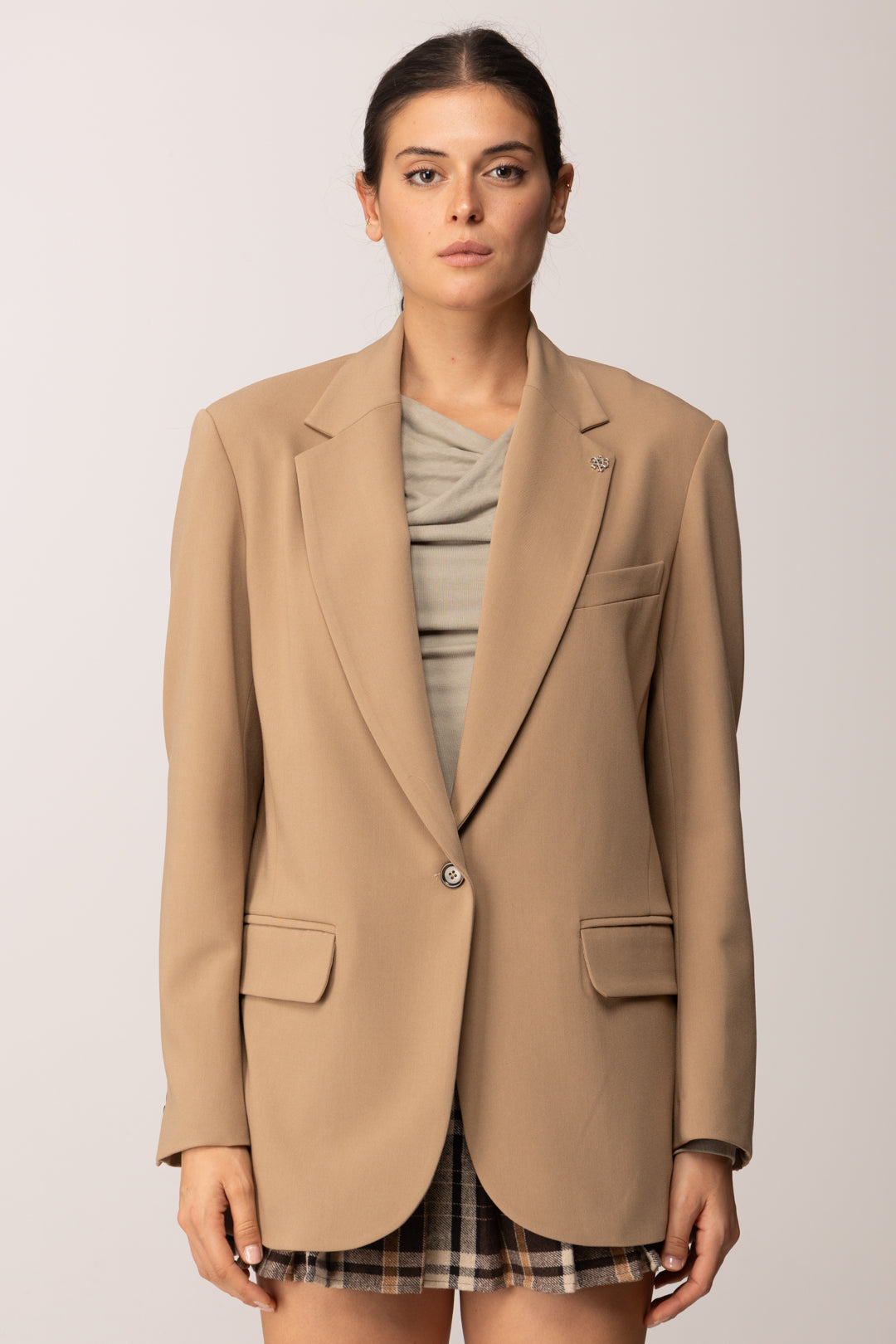 Der Blazer Linda von Aniye By ist eine perfekte Neuinterpretation des maßgeschneiderten Sakkos, gedacht für die zeitgenössische Frau, die klassische Eleganz und modernes Design liebt. Mit seiner leicht oversize Silhouette, klassischem Revers und der charakteristischen Logo-Brosche auf der Brust vermittelt dieses Kleidungsstück Stil und Persönlichkeit mit Leichtigkeit. Hergestellt aus einer Stretchmischung aus Viskose und Polyester, die Komfort, fließenden Fall und Struktur garantiert, wird es durch ein Innenfutter ergänzt, das es perfekt macht, auch über aufwendig gestalteten oder bestickten Tops und Kleidern getragen zu werden.