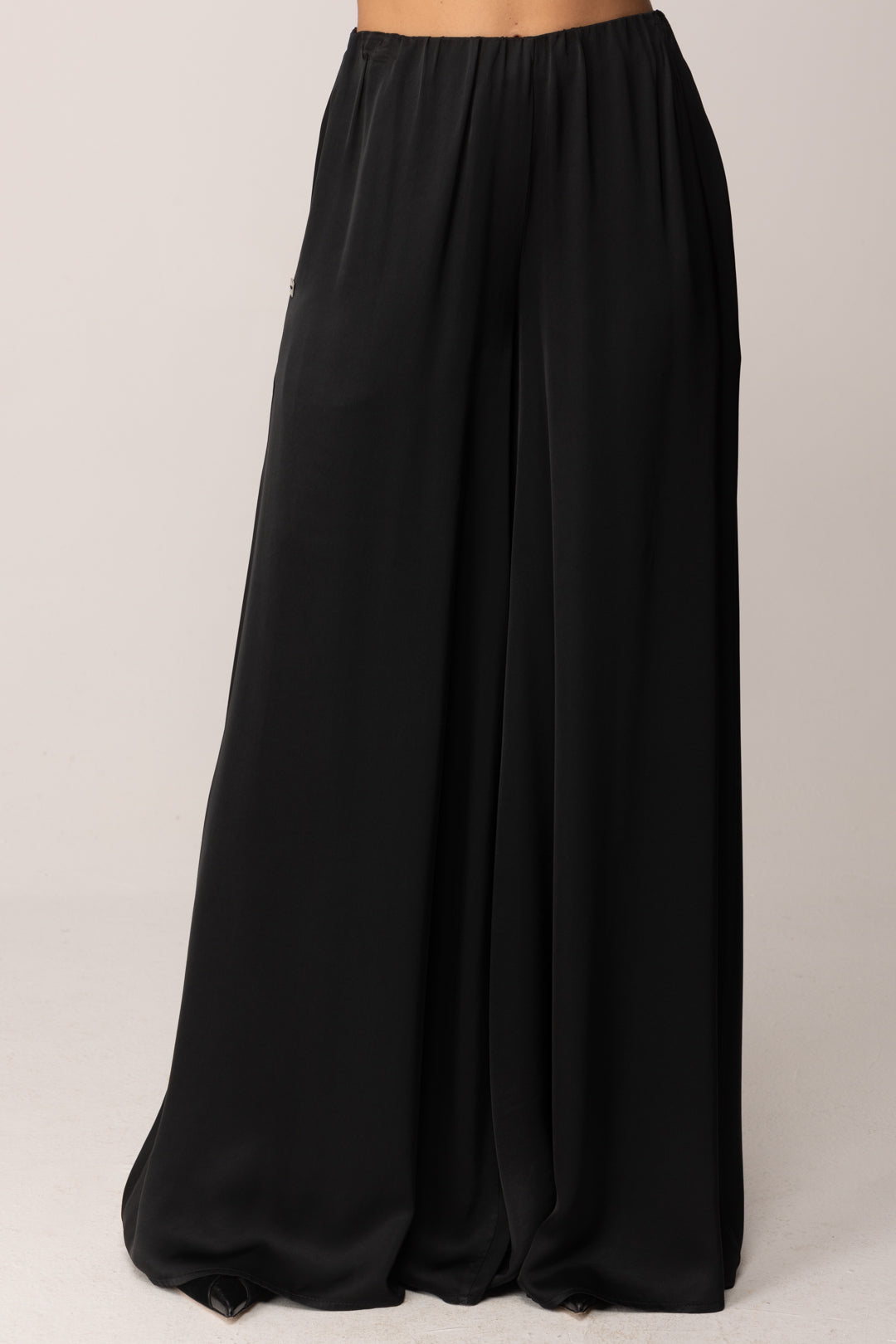 Der elastische Bund sorgt für eine bequeme und vielseitige Passform, die sich natürlich jeder Figur anpasst. Der Viskosestoff, frisch und atmungsaktiv, verleiht dem Kleidungsstück eine essentielle, aber raffinierte Eleganz, ideal für dynamische Tage oder für raffinierte Looks mit einer effortless-chic-Attitüde.