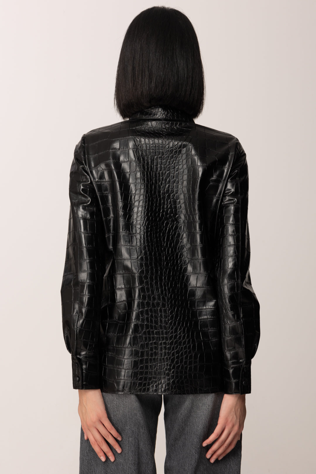Der Krokodildruck ist ein Must-have der Saison, das auf ein weiteres trifft – den Stoff mit Lederoptik – in diesem umwerfenden camicia Elisabetta Franchi, das allein schon einem Look Charakter verleiht. Klassisches Design, es sind die Wahl des Stoffes und der Textur, die den Unterschied machen, zusammen mit einer eng anliegenden Passform und der Raffinesse der farblich abgestimmten, bezogenen Knöpfe, die dir von einem femininen und sorgfältig gearbeiteten Kleidungsstück in jedem Detail erzählen.