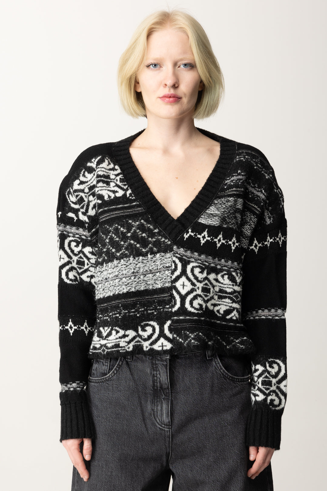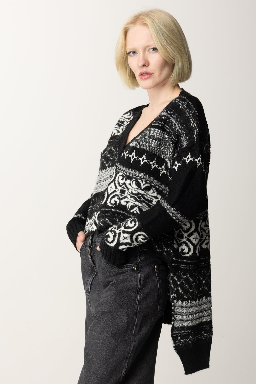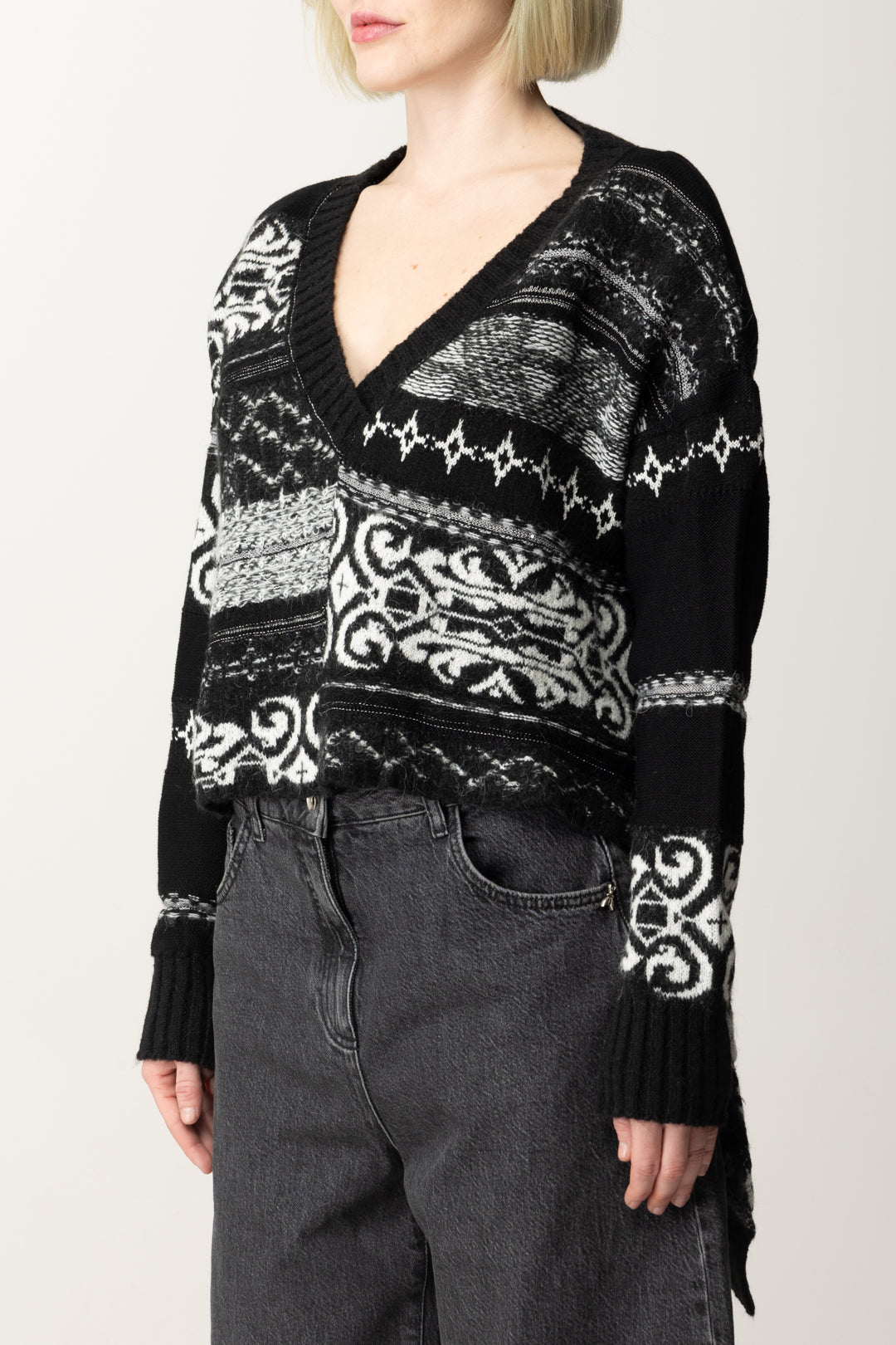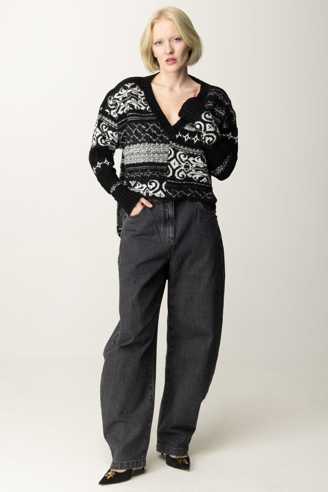 Mustermix für diesen Akep-Pullover, der ebenfalls ein skurriles Design hat, mit verkürzter Vorderseite und viel längerem Rücken, perfekt zur Kombination mit superkurzen oder superengen Unterteilen. Der V-Ausschnitt eignet sich auch für „Layered“-Outfits: Probieren Sie ihn über einem Hemd oder einem einfachen Rollkragenpullover und genießen Sie den Komfort und die Originalität eines Pullovers wie diesem!