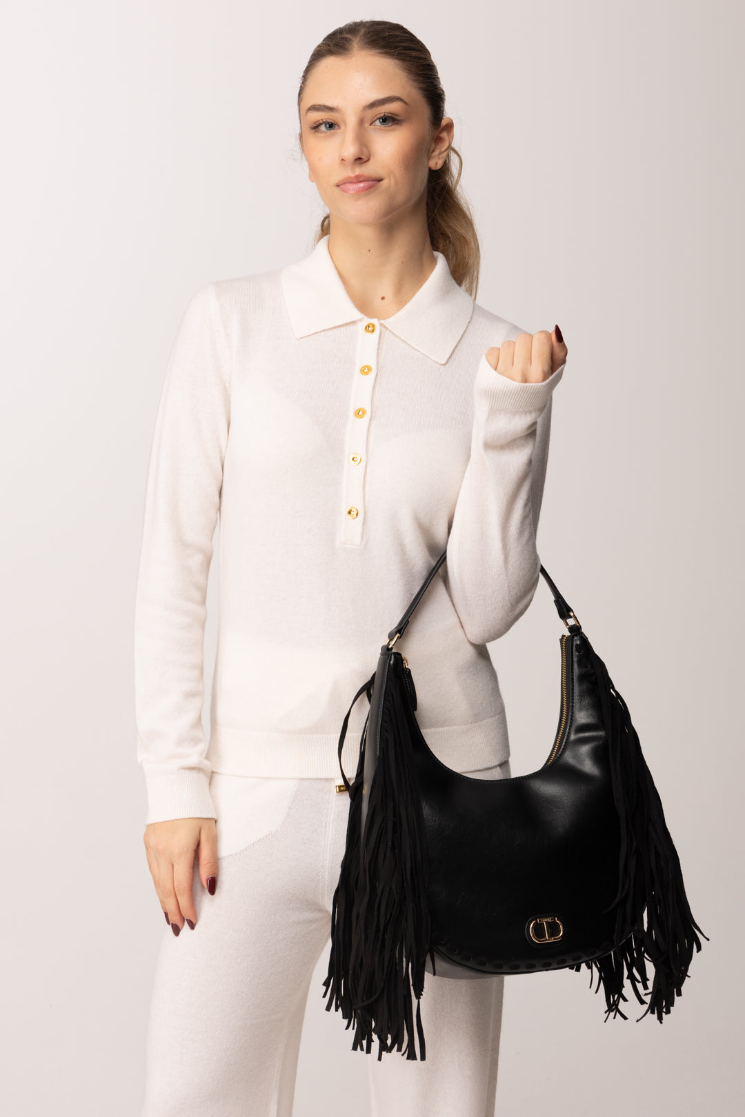 Der Stil zeigt sich in großen Dimensionen bei dieser hobo Twinset, die Persönlichkeit und Raffinesse vereint und sie für deine Tage einsetzt. Hergestellt aus Material mit Lederoptik, verfügt sie über seitliche Fransen, die Bewegung und Charakter verleihen, während das metallene Oval-T-Logo auf der Vorderseite einen dezenten, aber markanten Akzent setzt. Der einzelne Griff sorgt für einen komfortablen Tragekomfort, ideal für alle, die eine elegante und zeitgemäße Ästhetik schätzen.