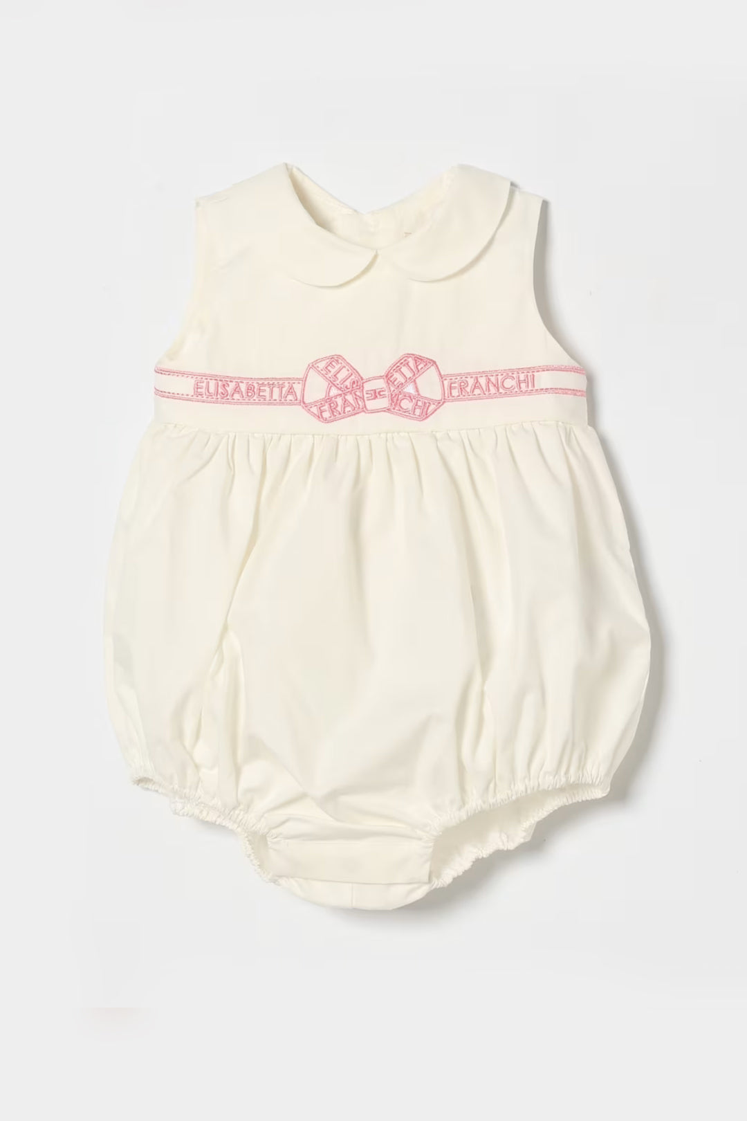Il Pagliaccetto Elisabetta Franchi La Mia Bambina in popeline è un capo delicato e raffinato, pensato per accompagnare con dolcezza i primi momenti speciali. La linea morbida e leggermente arricciata sul fondo crea un volume armonioso, mentre il colletto arrotondato aggiunge un dettaglio classico e senza tempo, perfetto per occasioni eleganti ma anche per look curati nella quotidianità.