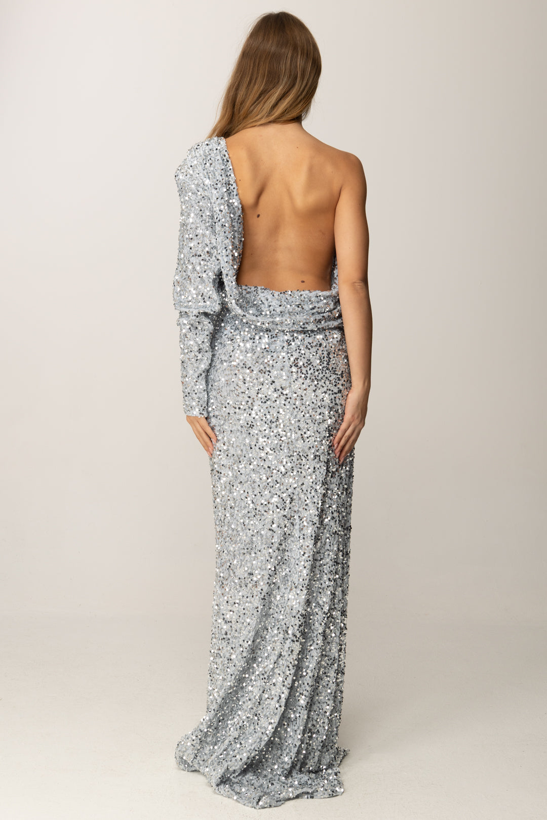 Eine wahre Hommage an funkelnde Eleganz, dieses Elisabetta Franchi Kleid aus der Red Carpet Kollektion ist vollständig mit Pailletten bedeckt, die das Licht von Kopf bis Fuß einfangen und einen leuchtenden, spektakulären Effekt erzeugen. Das One-Shoulder-Design verleiht Persönlichkeit, während die asymmetrischen Drapierungen, diagonal getragen, die Körperlinie betonen. Der Rücken zeigt eine komplett freie Rückenpartie für einen mutigen und raffinierten Touch. Die Passform ist slim, gedacht, um zu umschließen ohne zu drücken, während der unsichtbare Reißverschluss am Rücken einen sauberen Verschluss garantiert.