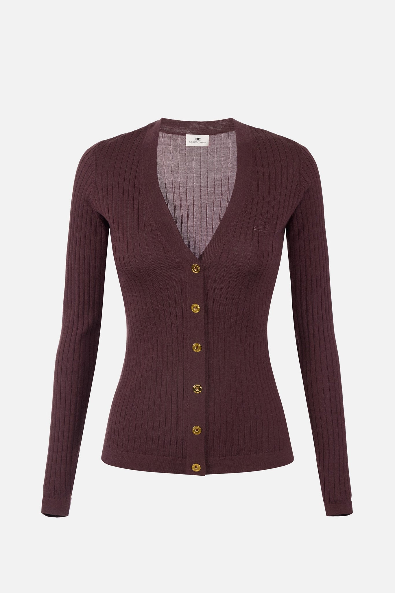 Eleganz für den Alltag und Komfort vereinen sich in diesem Cardigan Elisabetta Franchi, gefertigt aus einem edlen Kaschmirmixgarn, das sanft umhüllt, mit einem feinen Rippenmuster, das die Vertikalität der Silhouette betont. Der Verschluss mit Schmuckknöpfen ist das Markenzeichen der Marke: nicht nur mit Logo, sondern ein echtes Wiedererkennungsmerkmal.