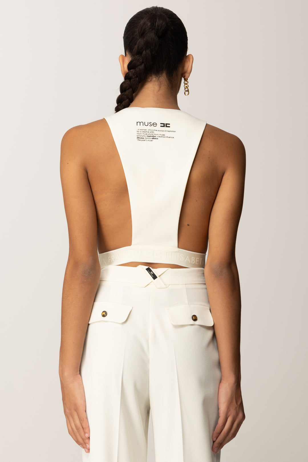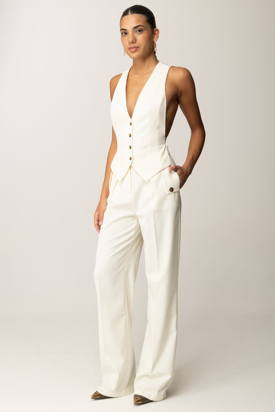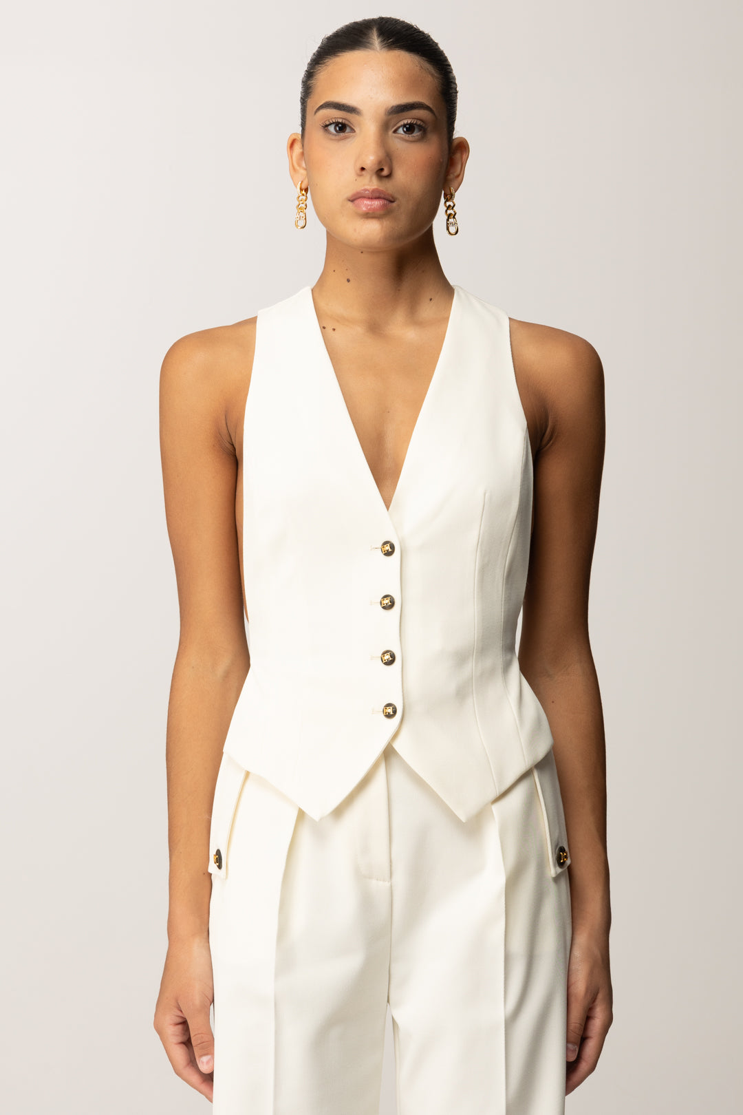 Eine Verschmelzung von Schneiderkunst und trendigen Details: Dieses Gilet Elisabetta Franchi aus Baumwoll-Gabardine schmiegt sich mit einer Slim-Passform an die Figur, dank eines dezenten Gummizugs an der Seite, der die Taille betont. Die klassische Linie wird durch den inspirierenden Lettering-Print auf der Rückseite in kontrastierenden Tönen einzigartig – eine moderne Botschaft, die nur denen offenbart wird, die dir folgen. Der Verschluss mit hornähnlichen Knöpfen, verziert mit Logo, unterstreicht die Markenidentität mit Understatement.
