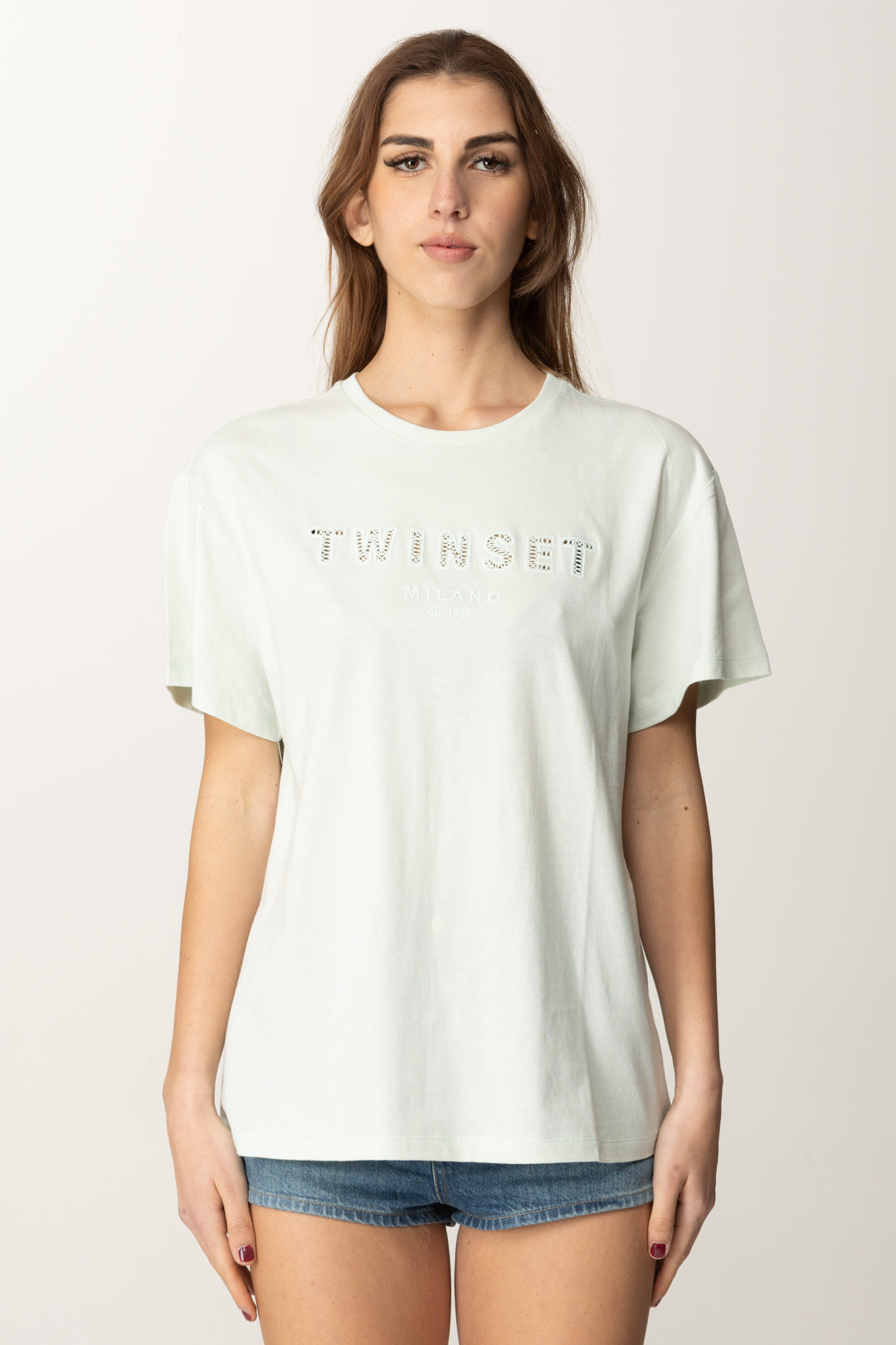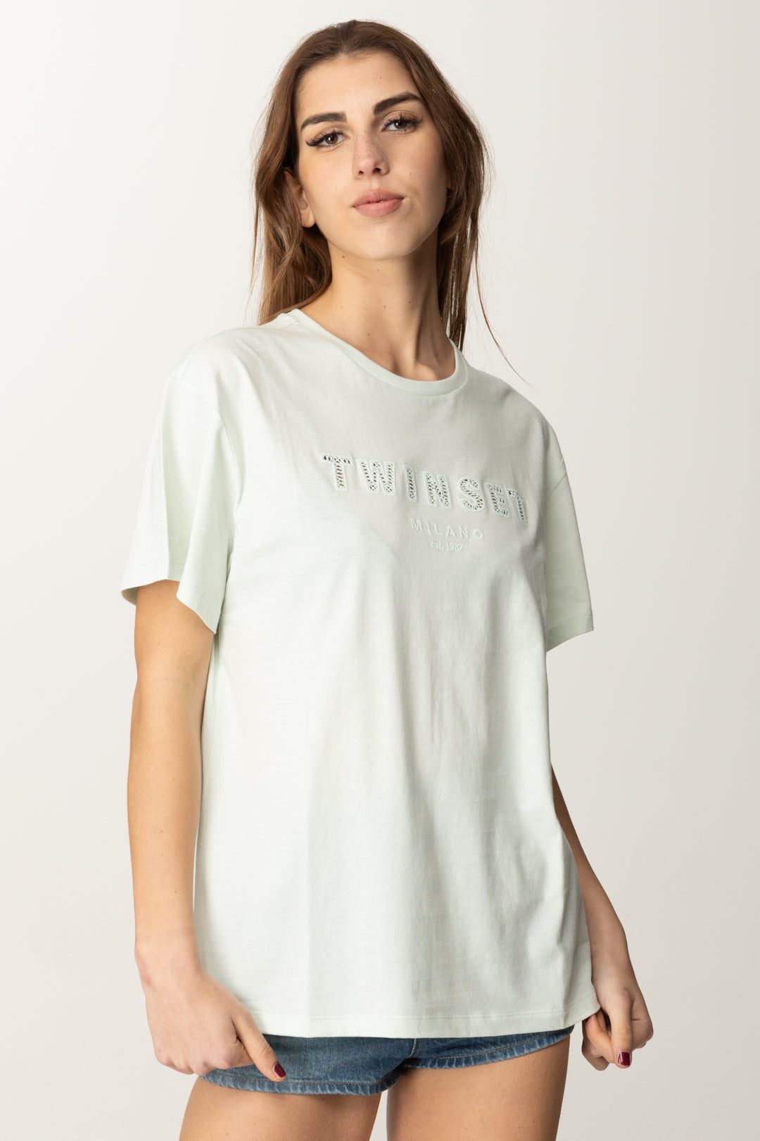 Mit einem schlichten Design und einem gestickten Logo-Label: dieses T-Shirt Twinset ist das perfekte Gleichgewicht zwischen lässig und raffiniertem Stil. Trage es mit einer schmalen Hose und High Heels für einen eleganten Tageslook oder mit einer Jeansjacke für einen urbaneren Look.