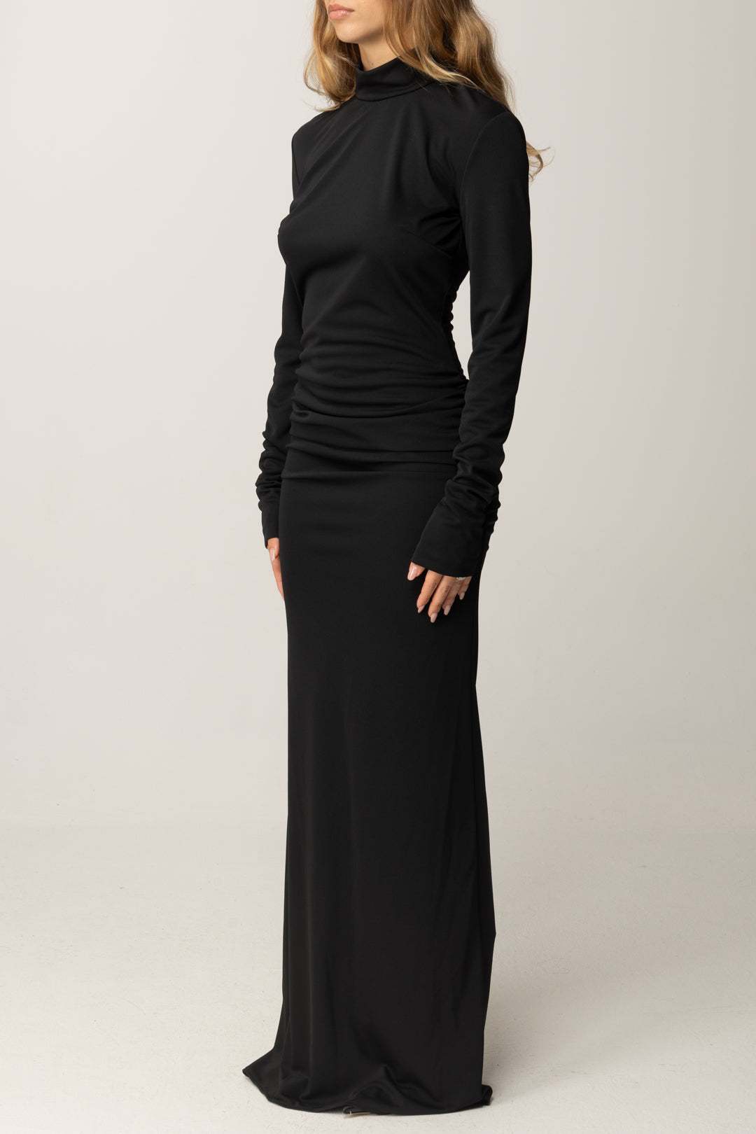 A sensual abito Aniye By that will strike you for its sobriety with a surprise element on the back. Long and flowing on the silhouette, it features a high neck and long sleeves, then amazes on the back with a wide opening that leaves the back largely exposed. Draping at the hips emphasizes the silhouette: a true bijoux for your grand soirées.