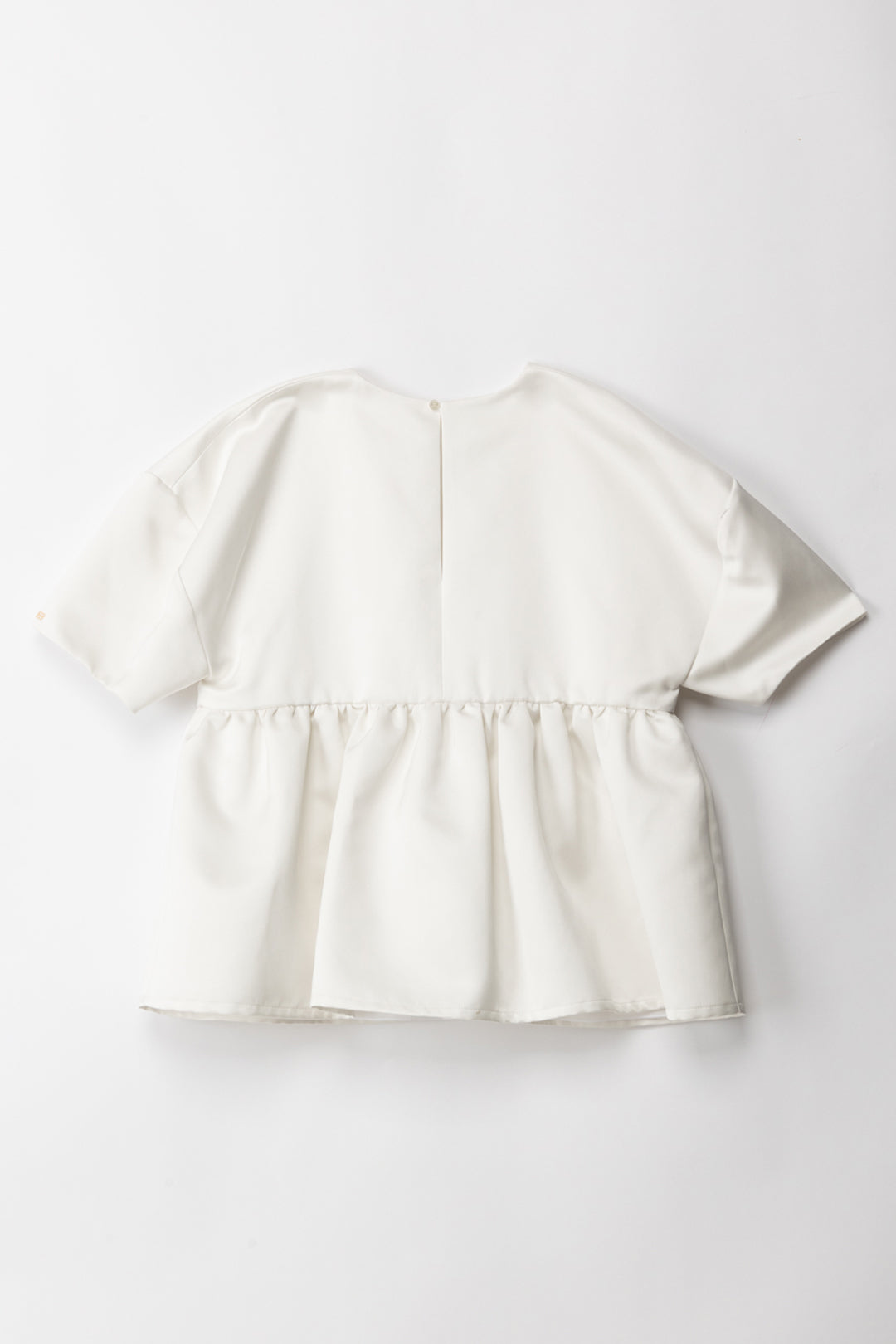 Blouse Elisabetta Franchi La Mia Bambina for mini outfit but great elegance: made of duchesse, it features a ruffle at the waist and a delicate floral application on the chest, as well as short sleeves with logo application on the left. Delightful with skirts but also leggings and pants for comfortable and chic outfits.