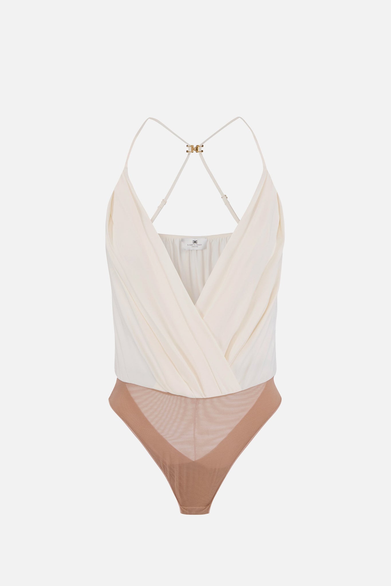Con raffinata leggerezza e sensualità discreta, questo body in georgette di viscosa Elisabetta Franchi è pensato per avvolgere il corpo con eleganza eterea e struttura fluida. La georgette dona un drappeggio delicato e leggero che accarezza le curve senza costringerle, creando un effetto sofisticato e femminile. La linea pulita e minimale lascia spazio al dettaglio di design — lo scollo morbido e incrociato, le spalline sottili a incrocio sul retro, e la naturale caduta del tessuto — che conferiscono a questo body un’allure moderna e chic.
