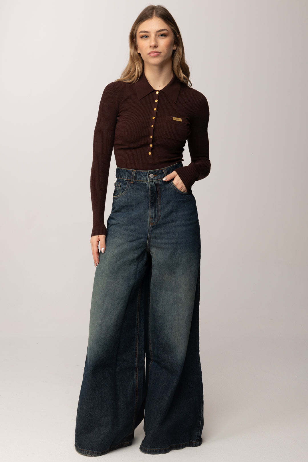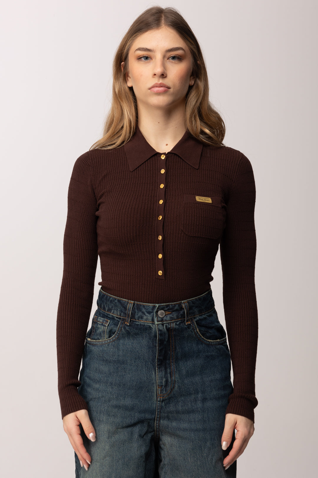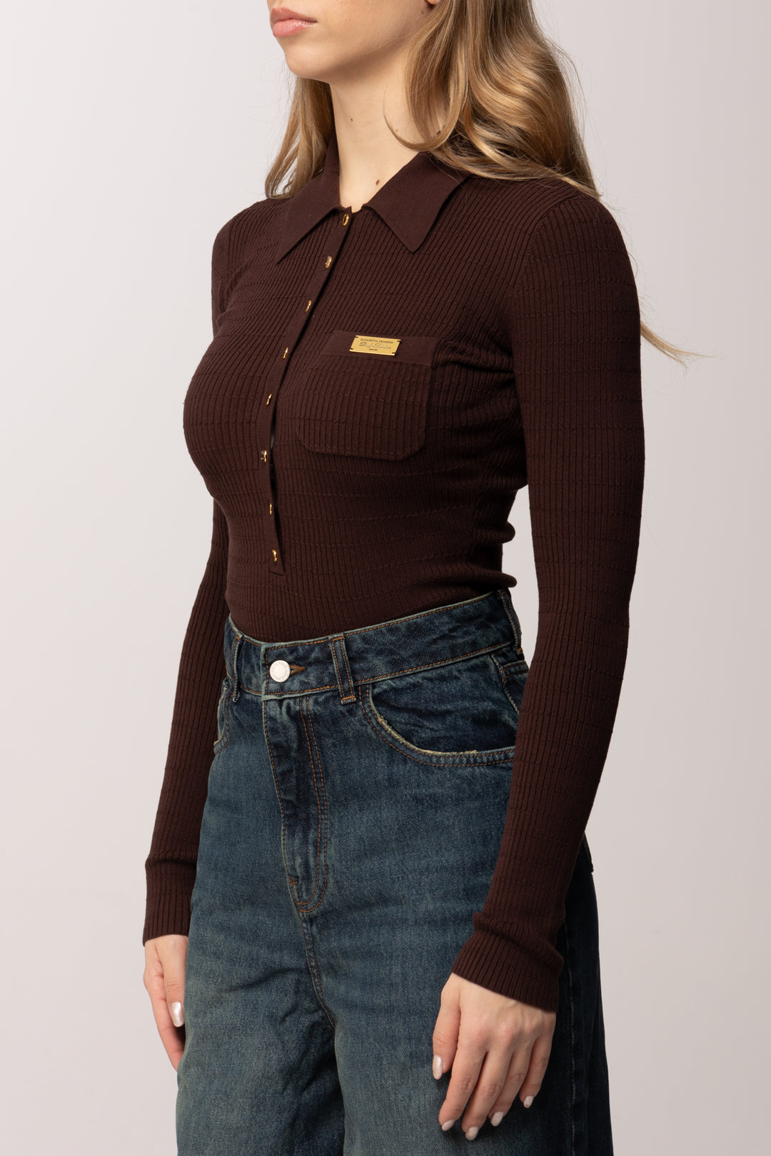 - Colletto a polo con bottoni in metallo dorato con logo