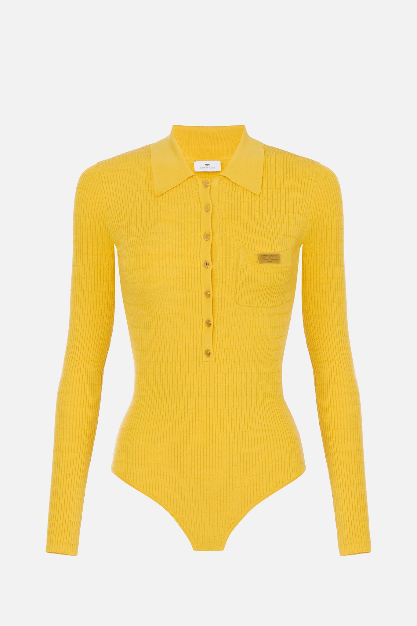 Aggiungi al reparto più sofisticato della maglieria di stagione questo body Elisabetta Franchi, realizzato in maglia lavorata a micro-trecce, un design che combina artigianalità e stile contemporaneo in un unico capo iconico. La vestibilità slim avvolge la silhouette, esaltando le forma con naturalezza e grazia. Il design si distingue per il colletto a polo con bottoni in metallo dorato con logo e la tasca applicata sul petto, arricchiti da dettagli in metallo dorato e lettering che catturano la luce con discrezione, trasformando un capo basico in un elemento di stile raffinato. Gli inserti metallici e la texture tattile creano un linguaggio visivo intrigante, perfetto per outfit in cui il dettaglio fa la differenza.
