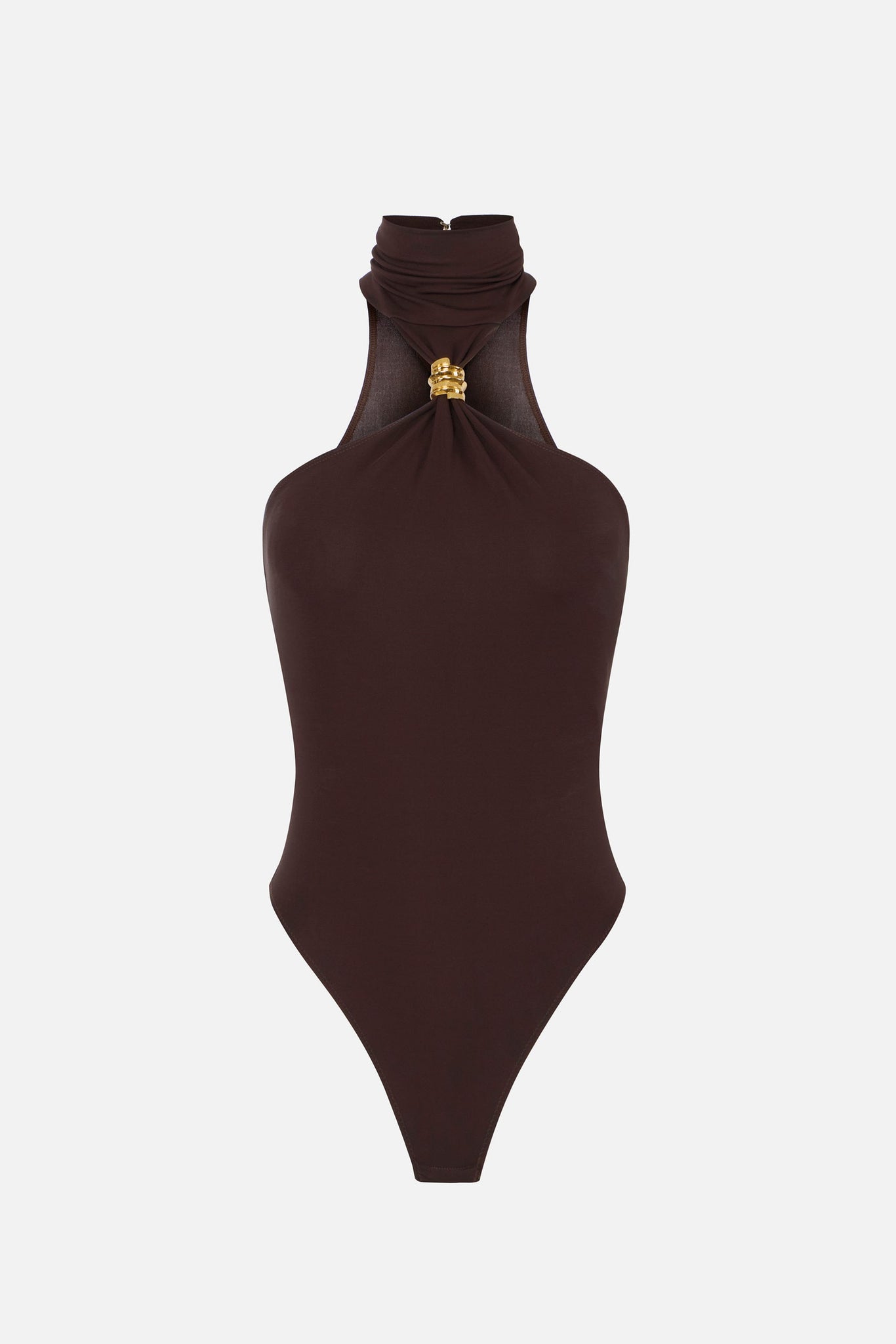 Elegante e sofisticato, questo body Elisabetta Franchi è pensato per valorizzare la silhouette con naturalezza e carattere. Realizzato in jersey crêpe dalla vestibilità slim, avvolge il corpo con una sensazione morbida ma definita, creando un profilo armonioso e femminile. Il collo alto aggiunge un tocco di raffinatezza contemporanea, mentre il detail gioiello in metallo dorato che trattiene lo scollo dona un accento luminoso e distintivo, firmando il capo con eleganza ed enfatizzando, con questo espendiente, anche la linea delle spalle, che restano scoperte.