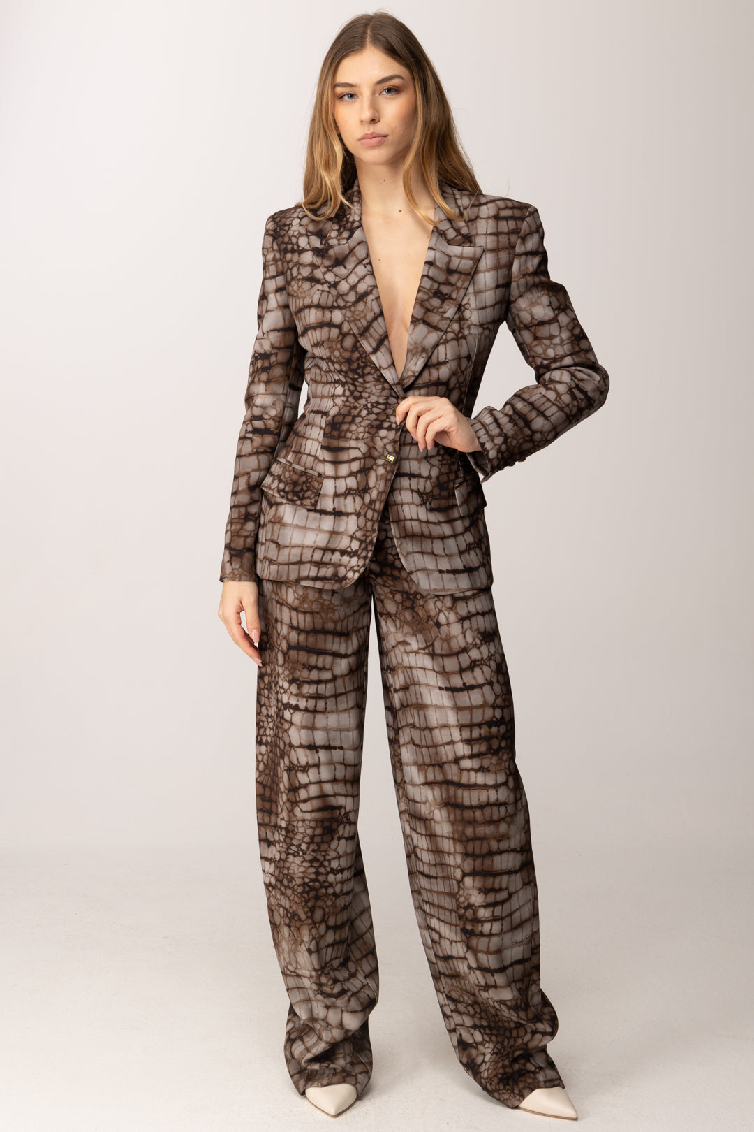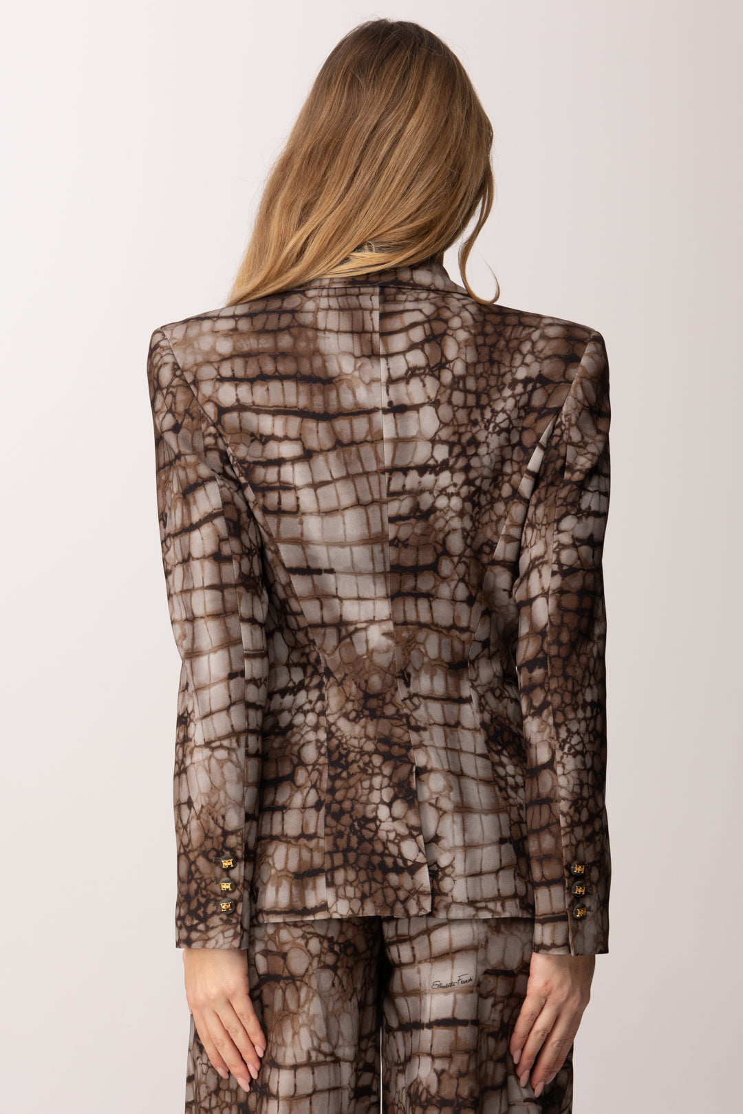 Questa sofisticata giacca in crêpe Elisabetta Franchi è un incontro di raffinata eleganza e coraggio stilistico: la texture del crêpe dona al capo un portamento fluido e leggero, mentre la stampa effetto “alligatore” aggiunge un carattere deciso e contemporaneo, perfetto per una donna che vuole osare con classe. Le spalle leggermente imbottite e la costruzione sartoriale definiscono una silhouette architettonica e femminile, capace di trasformare anche i look più semplici in outfit distintivi. La chiusura frontale singola — discreta ma curata — mantiene l’equilibrio tra sofisticatezza e versatilità, rendendo la giacca adatta sia a un contesto elegante sia a un uso quotidiano raffinato.
