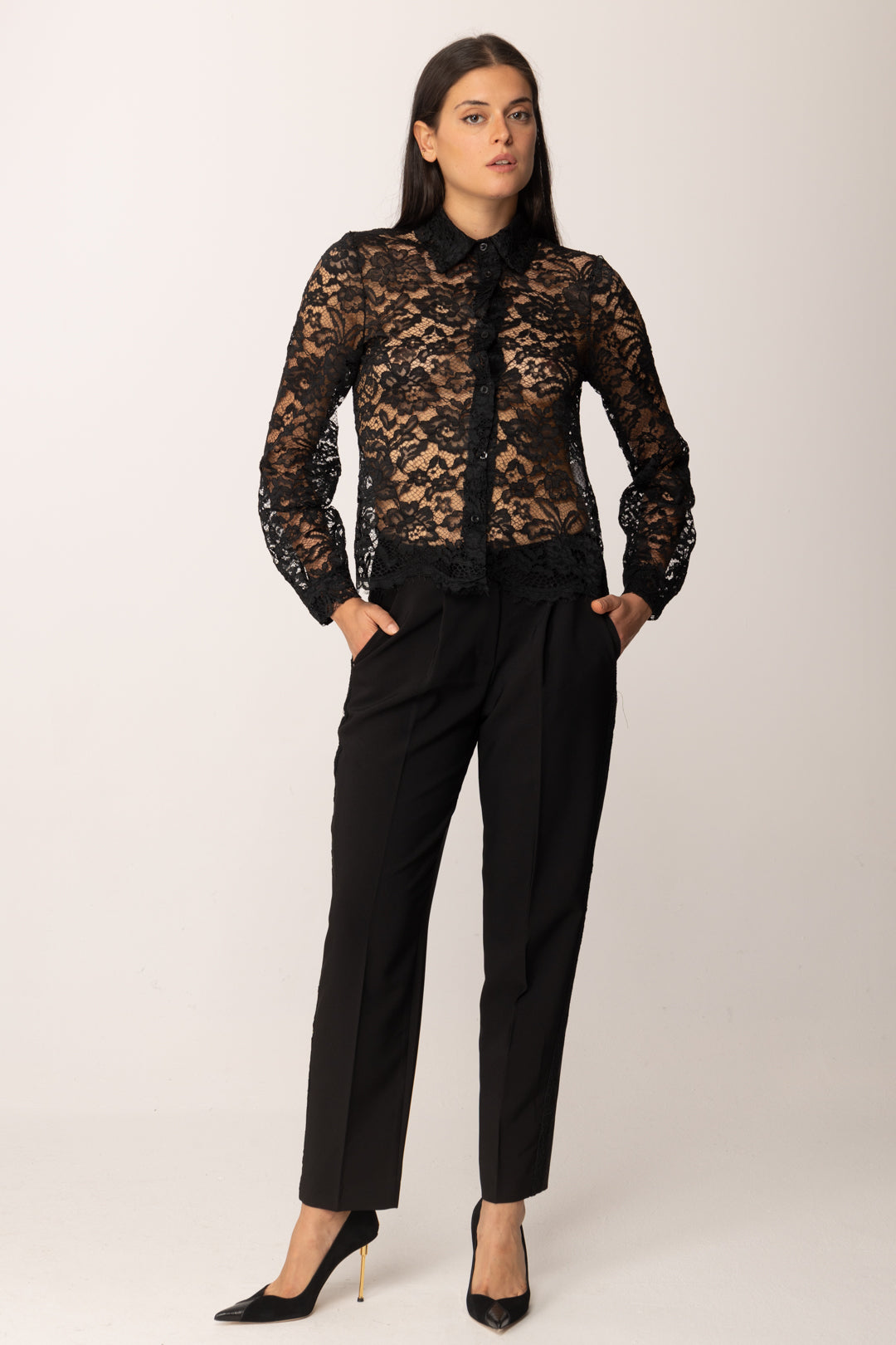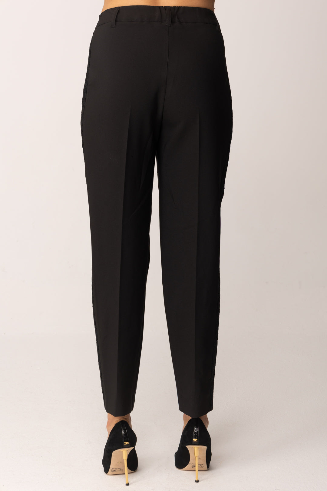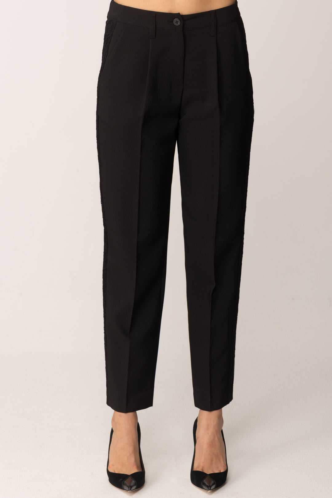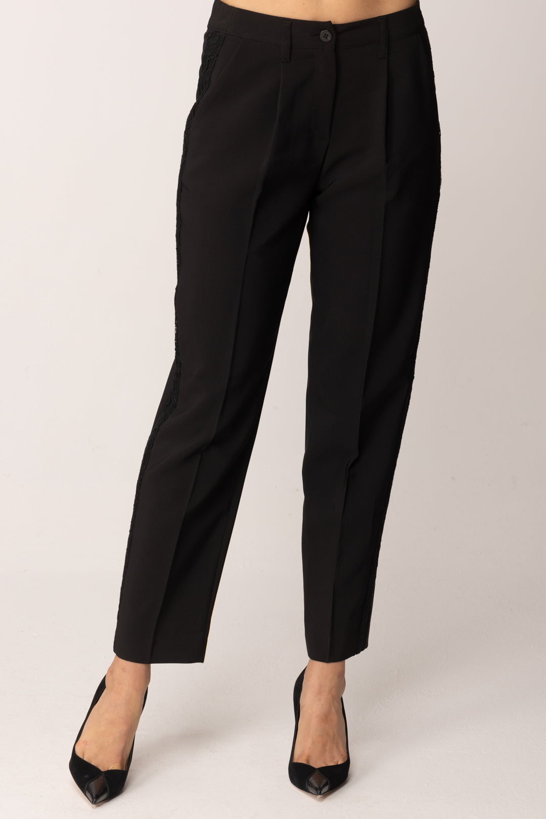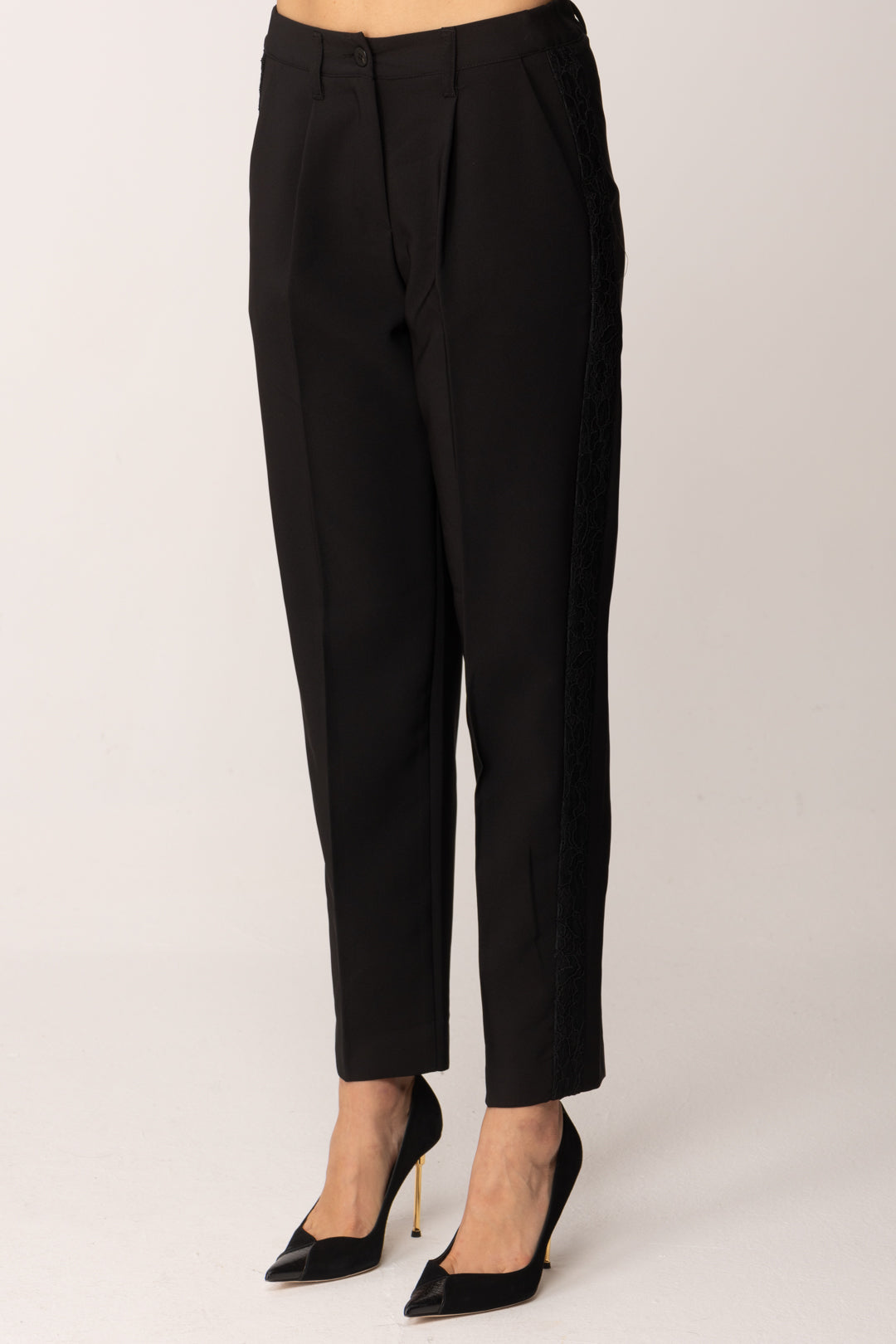 These Khloè Femme crop trousers reinterpret tailored elegance with a feminine and sophisticated note: the tone-on-tone lace insert along the side adds a precious detail that discreetly enhances the silhouette. A style choice designed for those who love refinement without giving up the functionality and comfort of a garment made to accompany everyday life.