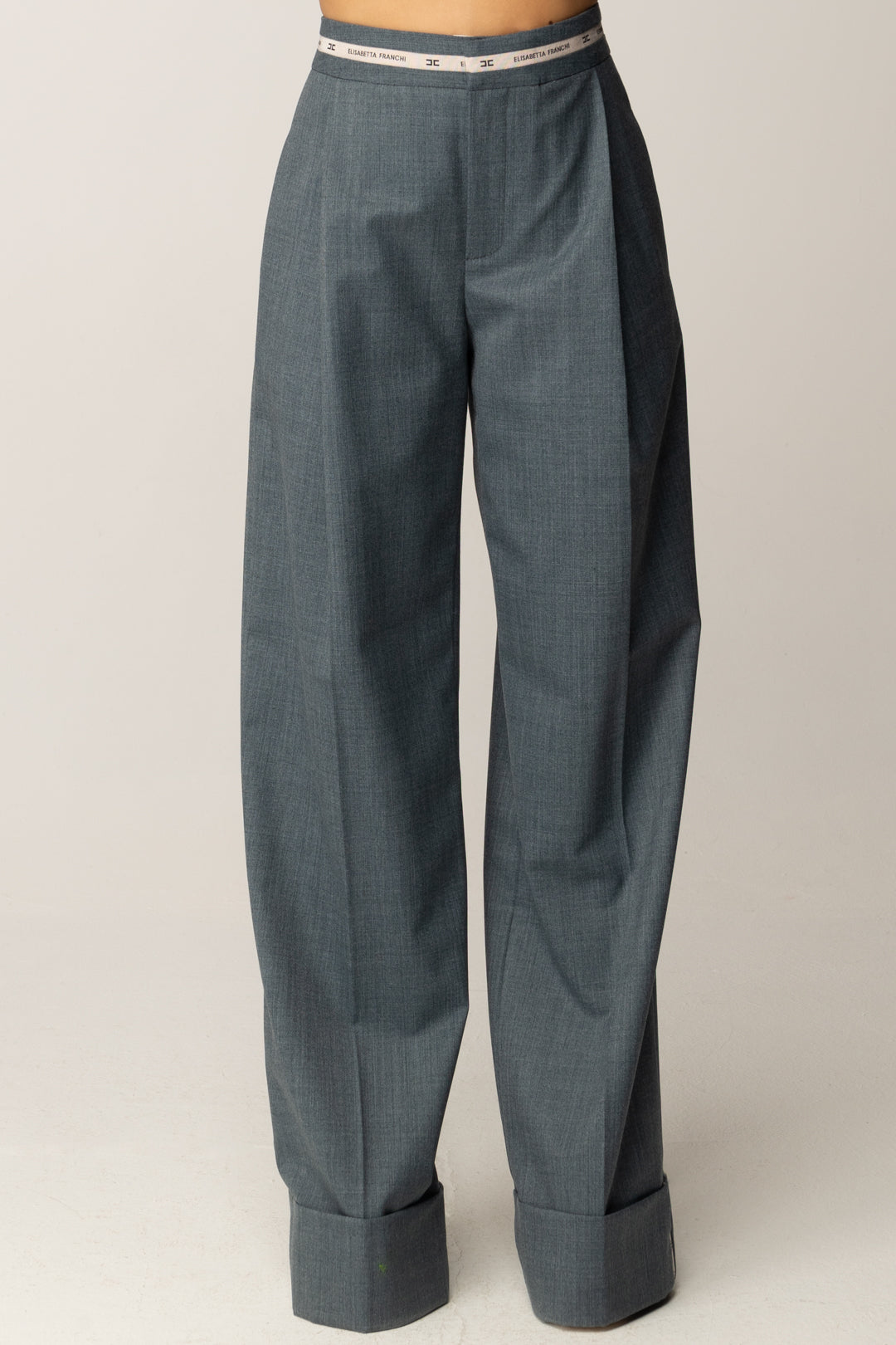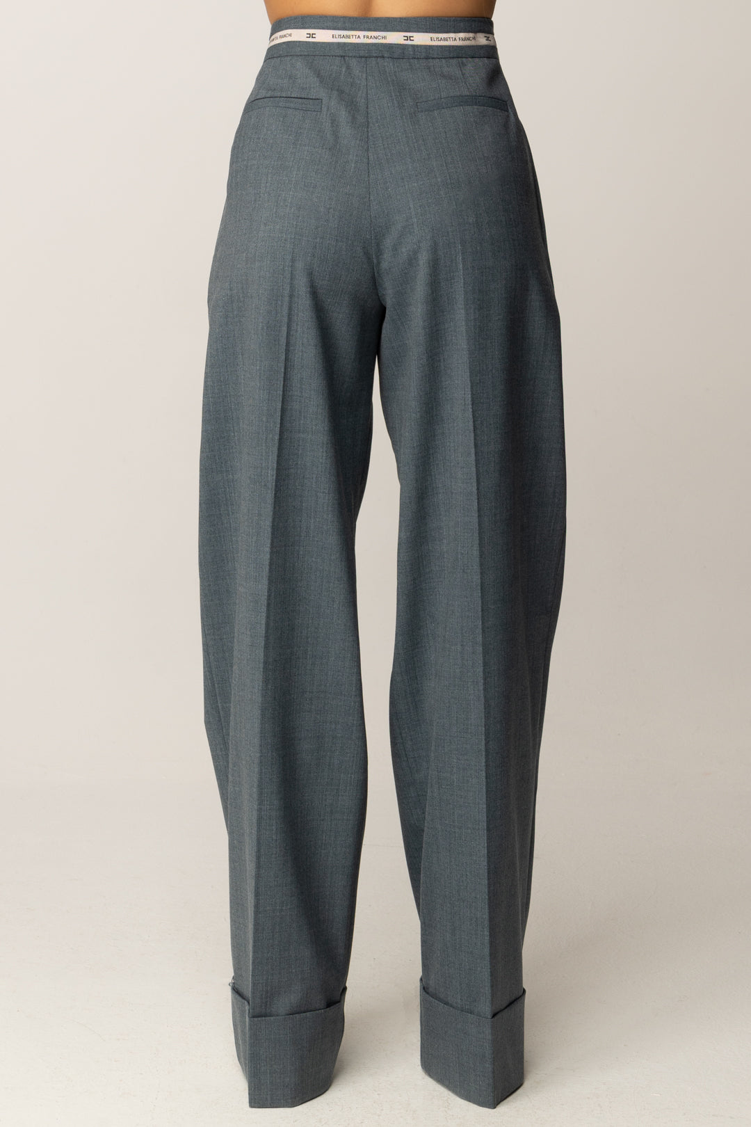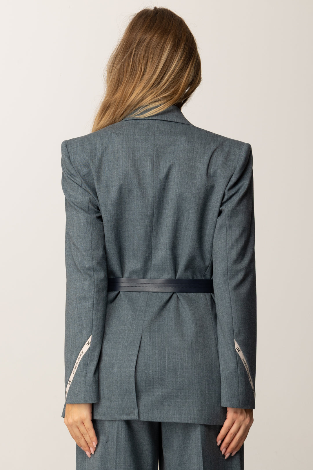 Modern spirit and sartorial precision for this Elisabetta Franchi suit perfect for ceremonies and seasonal events. The contemporary taste can be easily found in the jacket with wrap closure, accompanied by a ribbon belt in the same color with gold tips, and the detail of the sleeves with a logo ribbon insert, a recurring element in the collection. The matching pants have a soft cut, characterized by a wide cuff at the bottom, also enriched by the same ribbon motif, in a play of references perfect to create an impactful total look recognizable in the details.