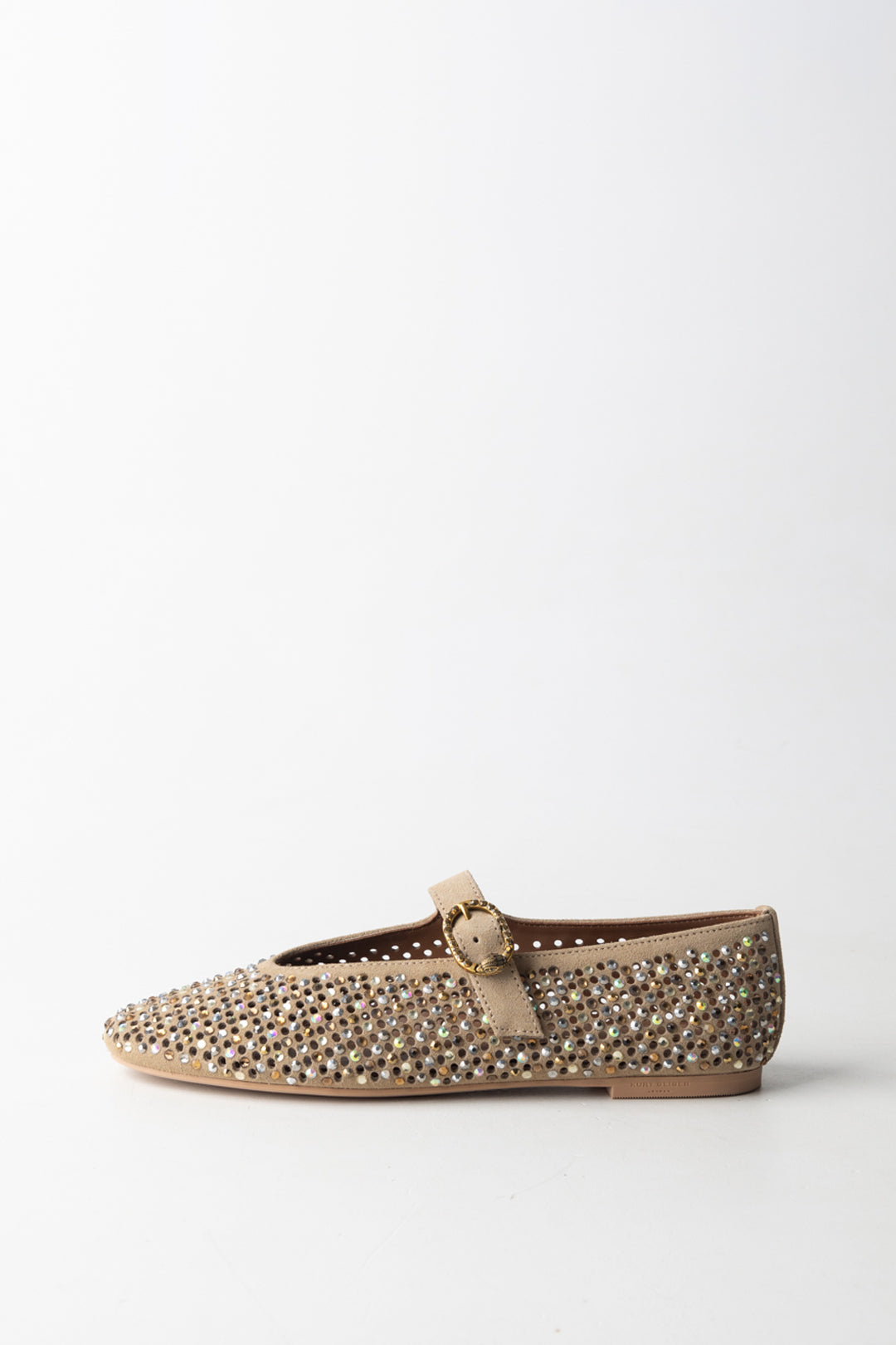 Perfect for occasions that require attention to detail, from elegant aperitifs to daytime city looks, these ballerinas serve as a statement accessory: the sparkle of the crystals catches the eye, the silhouette remains sober and essential. In just a few centimeters, all the charm of the British brand.