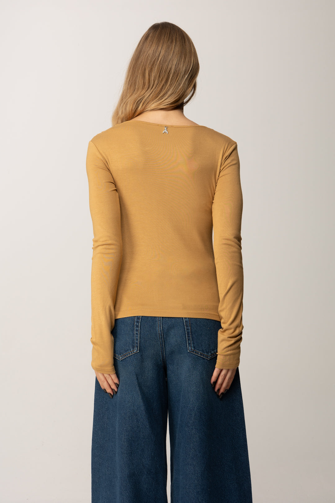 The fitted yet comfortable line and long sleeves make it perfect as a base layer under jackets or cardigans, but also as the star of minimal looks with a sophisticated soul. The natural fall of the fabric creates a harmonious effect that elongates the figure and gracefully follows movements.
