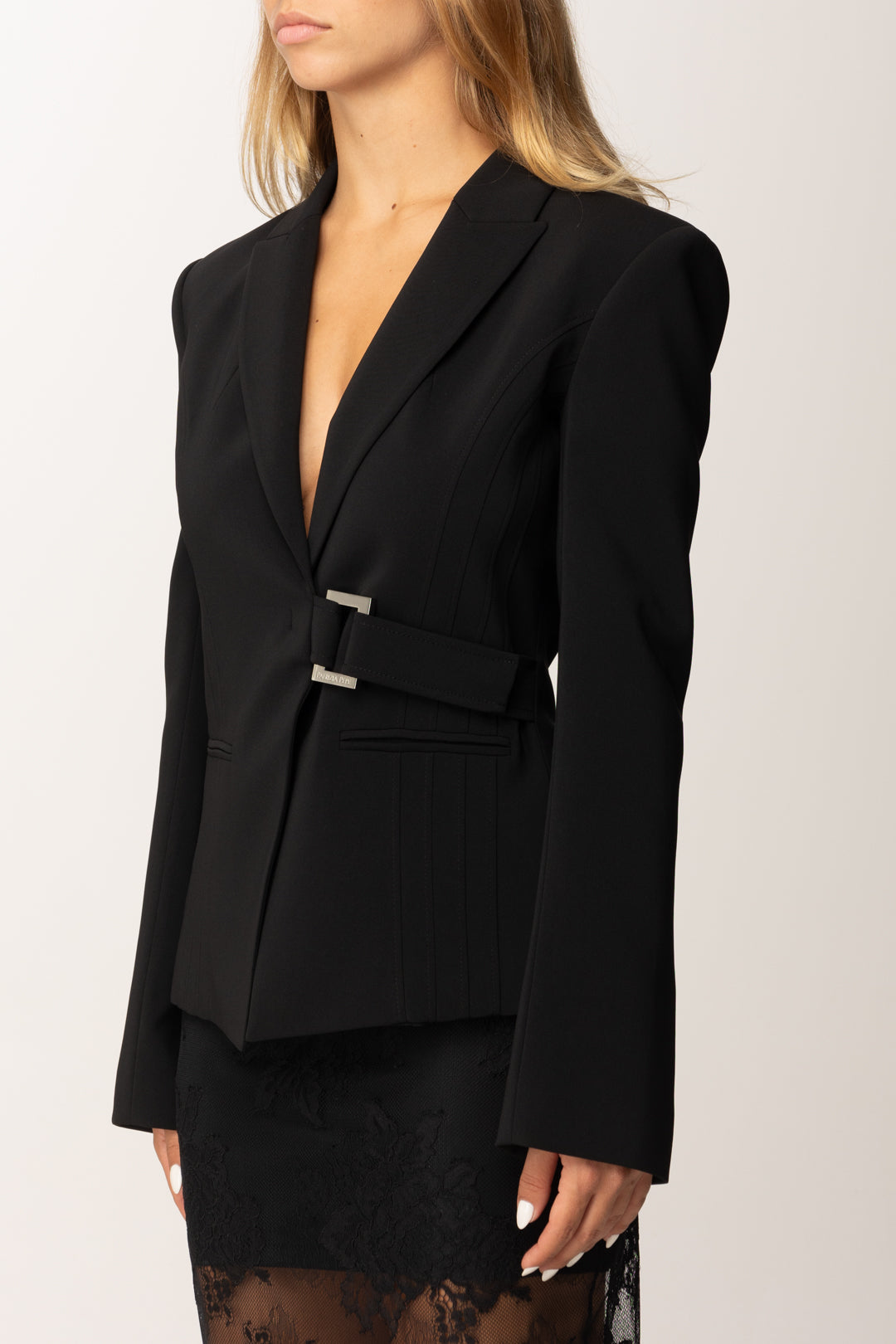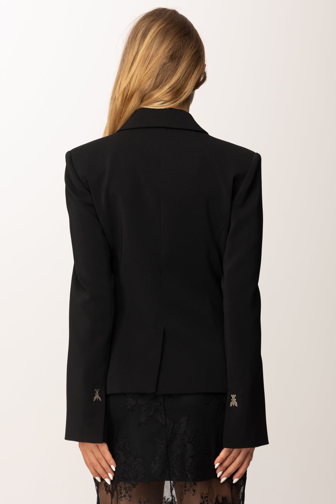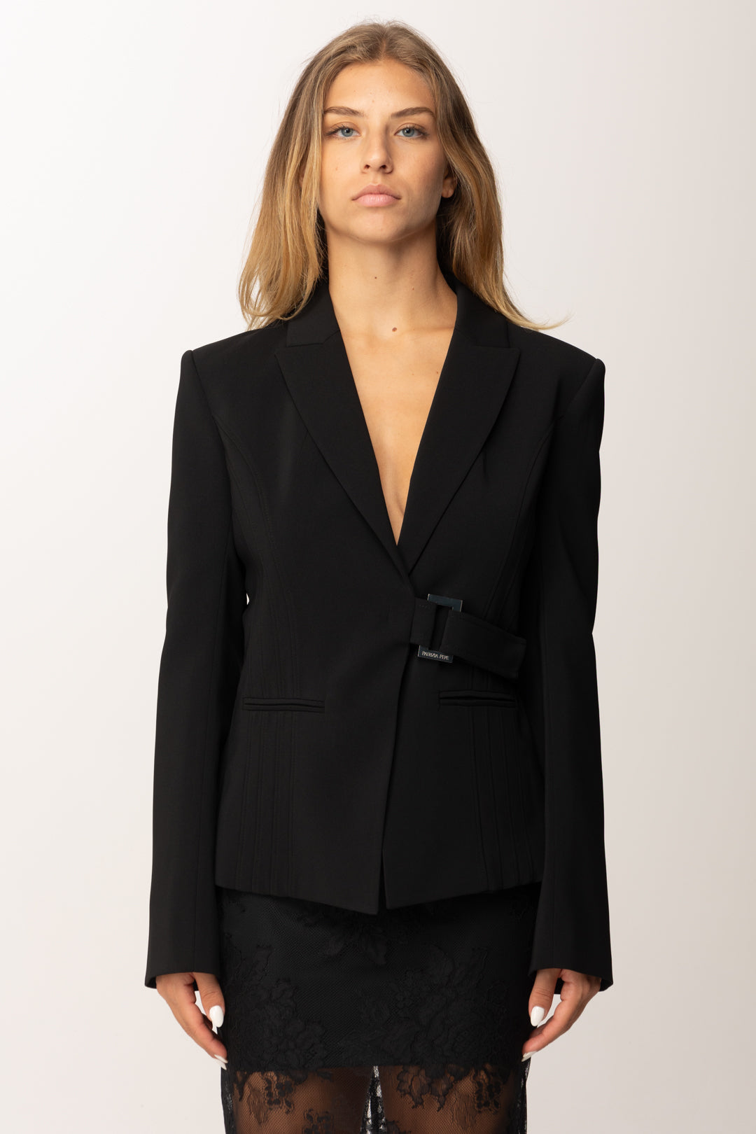An outerwear piece that stands out among the collection's proposals for the uniqueness of the design: you will immediately notice the distinctive closure of this giacca Patrizia Pepe, with the side buckle replacing the typical buttons, also perfect to emphasize the waist. Classic in other details, such as the collar with pointed lapel and welt pockets, this proposal is a perfect compromise between present and past.