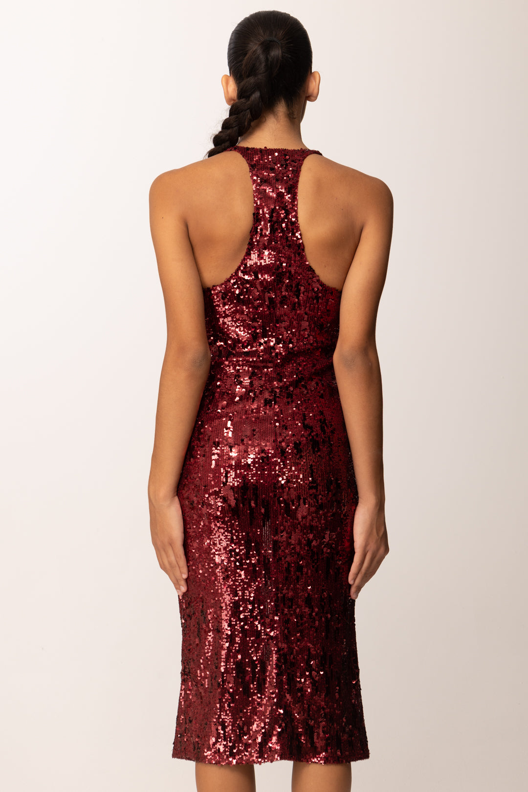 Are you looking for a party outfit to stand out but without too many extravagances? Then this midi dress Aniye By might be just right for you. Without betraying the fundamental lines of the elegant dress code, with a discreet midi cut and a sober round neckline at the front, it stands out for its liveliness thanks to the full sequin embroidery that makes it a sparkling outfit at every step. Another particularity is the back, with an Olympic cut that emphasizes the shoulder line, without leaving the back completely uncovered.