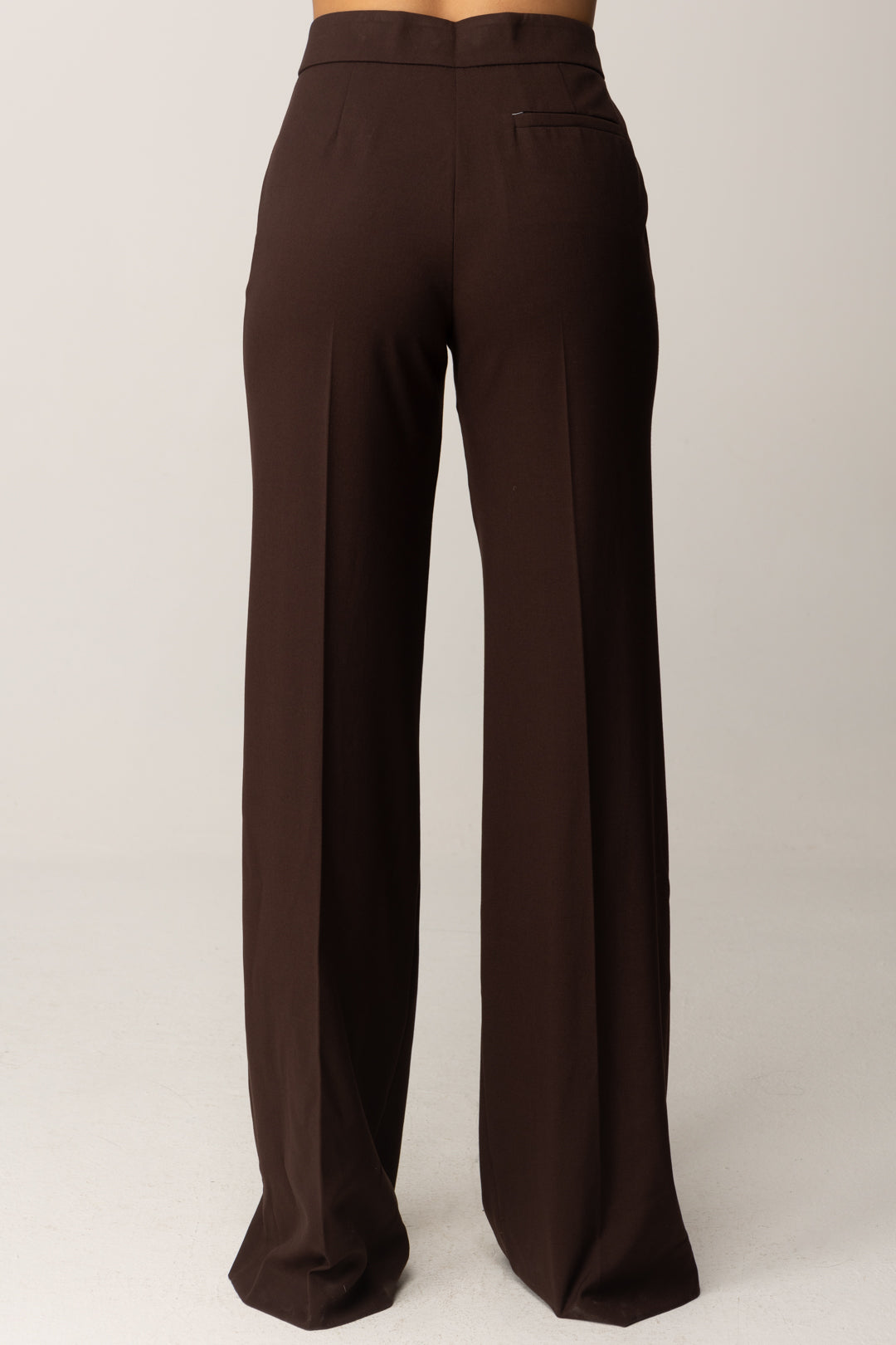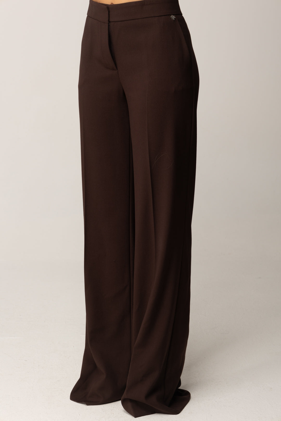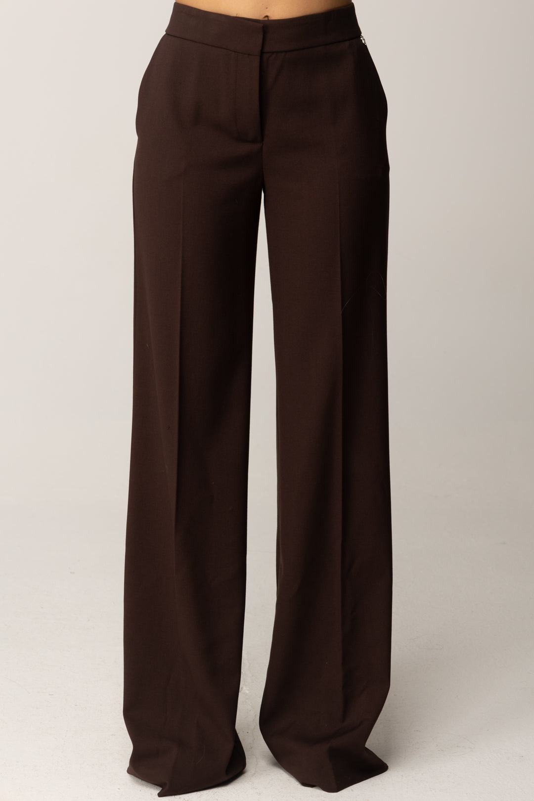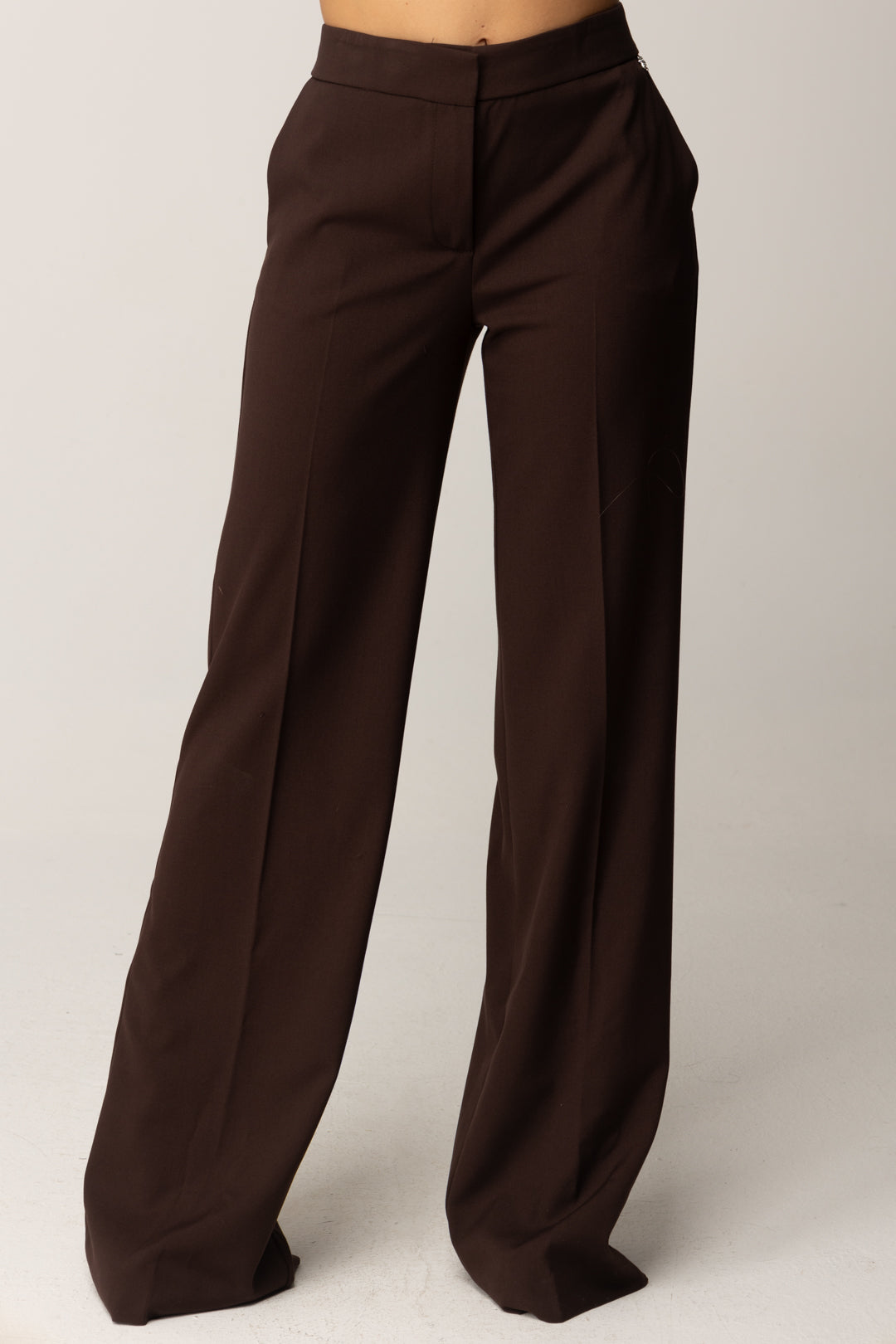 A classic garment with a contemporary taste: Aniye By trousers linear and refined, with a straight and clean silhouette that elongates the figure thanks to the high waist and pressed center crease. The stretch viscose blend fabric guarantees comfort and structure, for a fitting that follows every movement without giving up elegance. Details like the welt pocket on the back, the side pockets, and the metal logo define the character of an essential and versatile garment. The covered zip closure maintains the minimal look, making them suitable for a thousand interpretations.