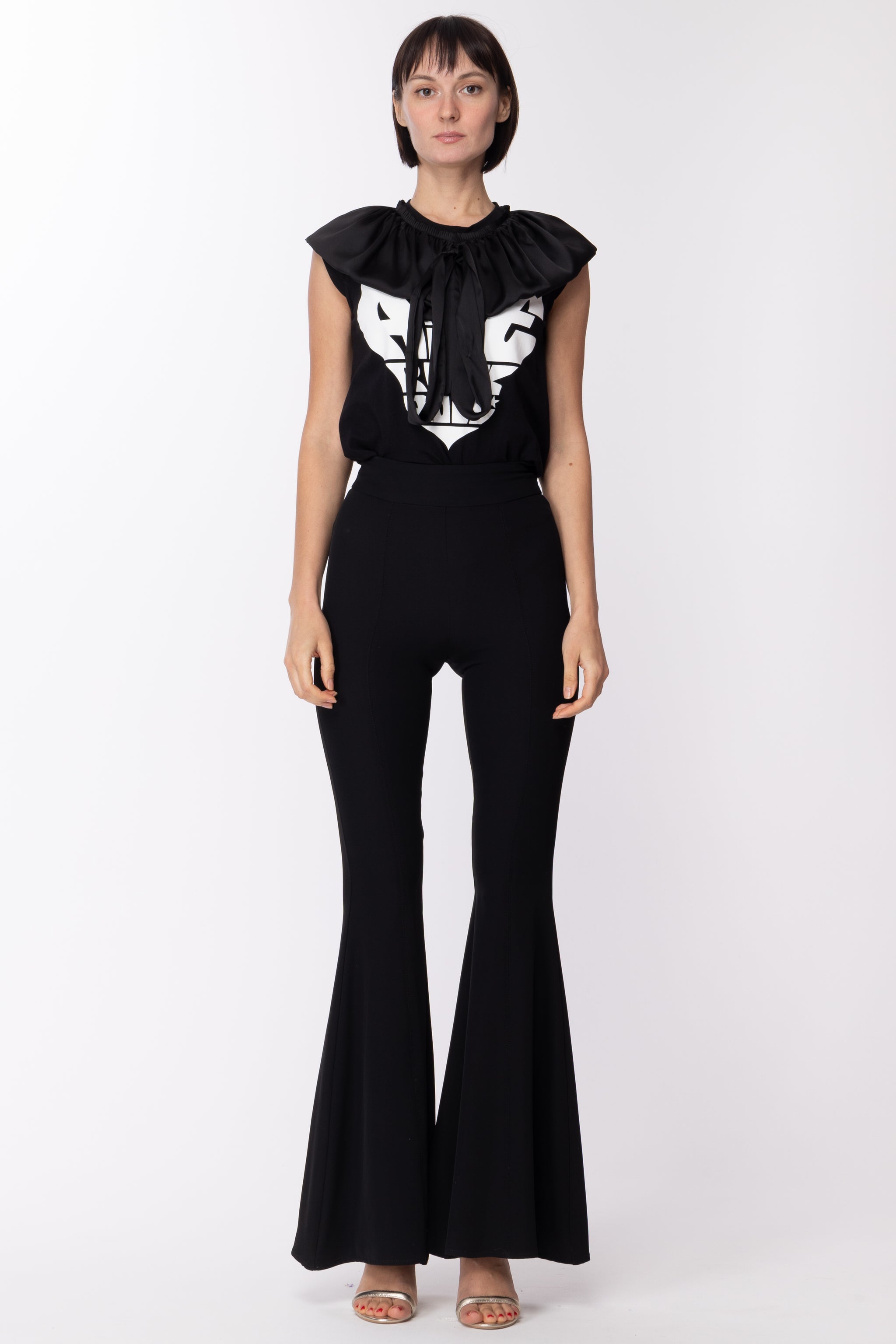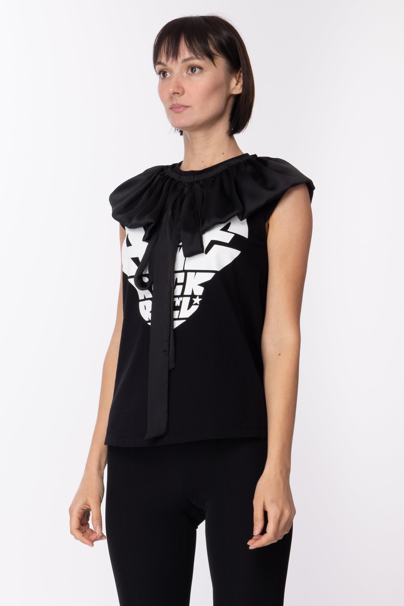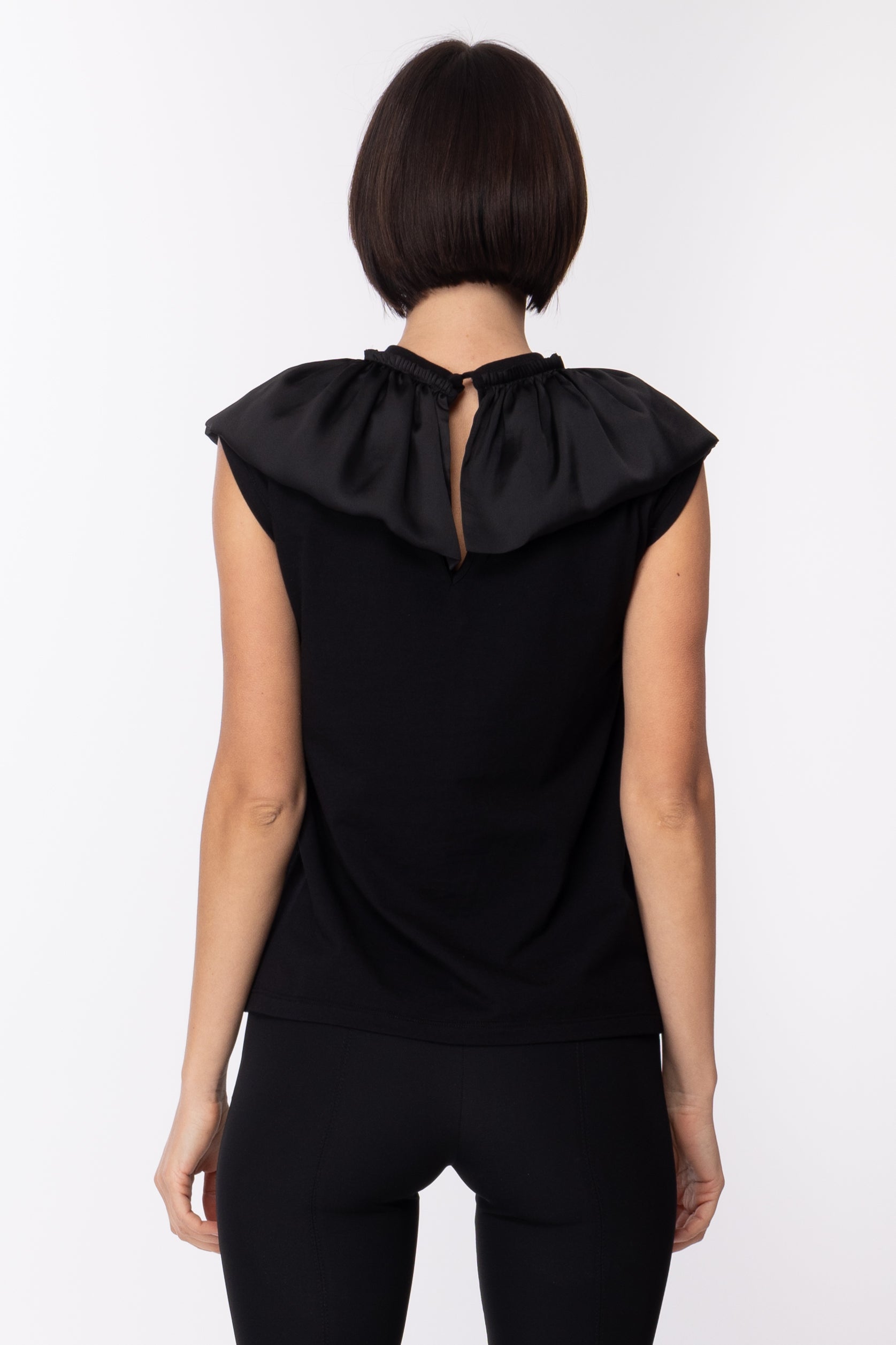 Amanda T-shirt with Ruffle CollarBLACK