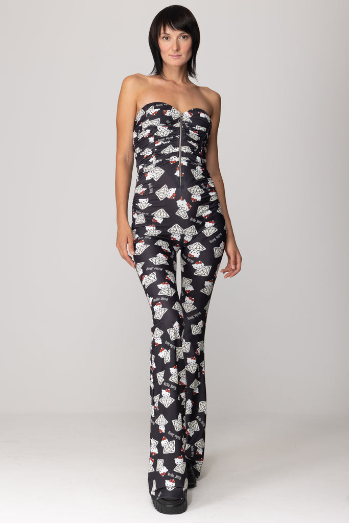 There are ways and ways to be the queen of the night, and this will be yours: a bit punk, a bit teen, with this jumpsuit Aniye By and its Hello Kitty print combined with the Diamond pattern. A sexy and fitted outfit, with a heart neckline and full front zip and flared legs to wear with high heels and a lot of desire to have fun.