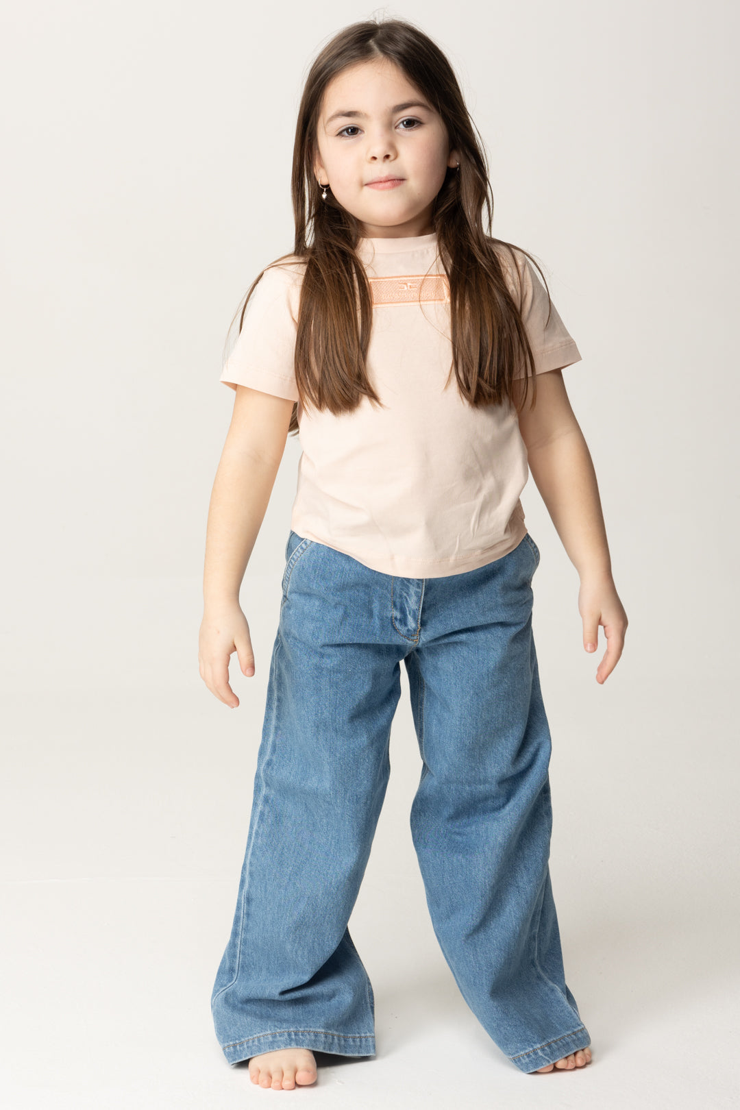 T-shirt Elisabetta Franchi La Mia Bambina minimal and comfy, embellished with the delicate detail of the embroidered label logo on the front. Easy to match with jeans or skirts for a practical and fashionable look!