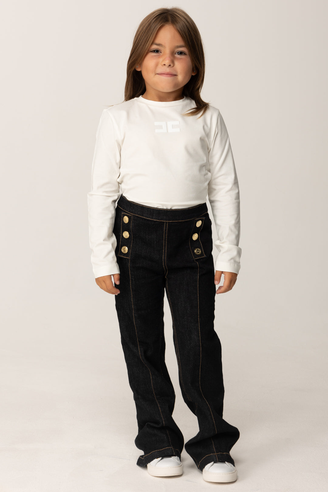 Simple and everyday but also chic when needed: the advantages of having a t-shirt Elisabetta Franchi La mia Bambina like this one lie mainly in its versatility. Long sleeves and crew neck, made of cotton, it is completed by the brand's CC logo on the chest as the only sign of recognition, which adds beauty and does not alter the practicality of this garment.