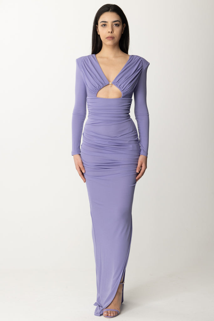 Very adherent dress Elisabetta Franchi from the Red Carpet line, a sensual and elegant outfit for your exceptional events. Made of draped jersey on the front and back, it features a cut-out under the bust completed by a small EF logo charm. Long sleeves, you won't need much else to complete it, just a nice high heel and shiny jewelry.