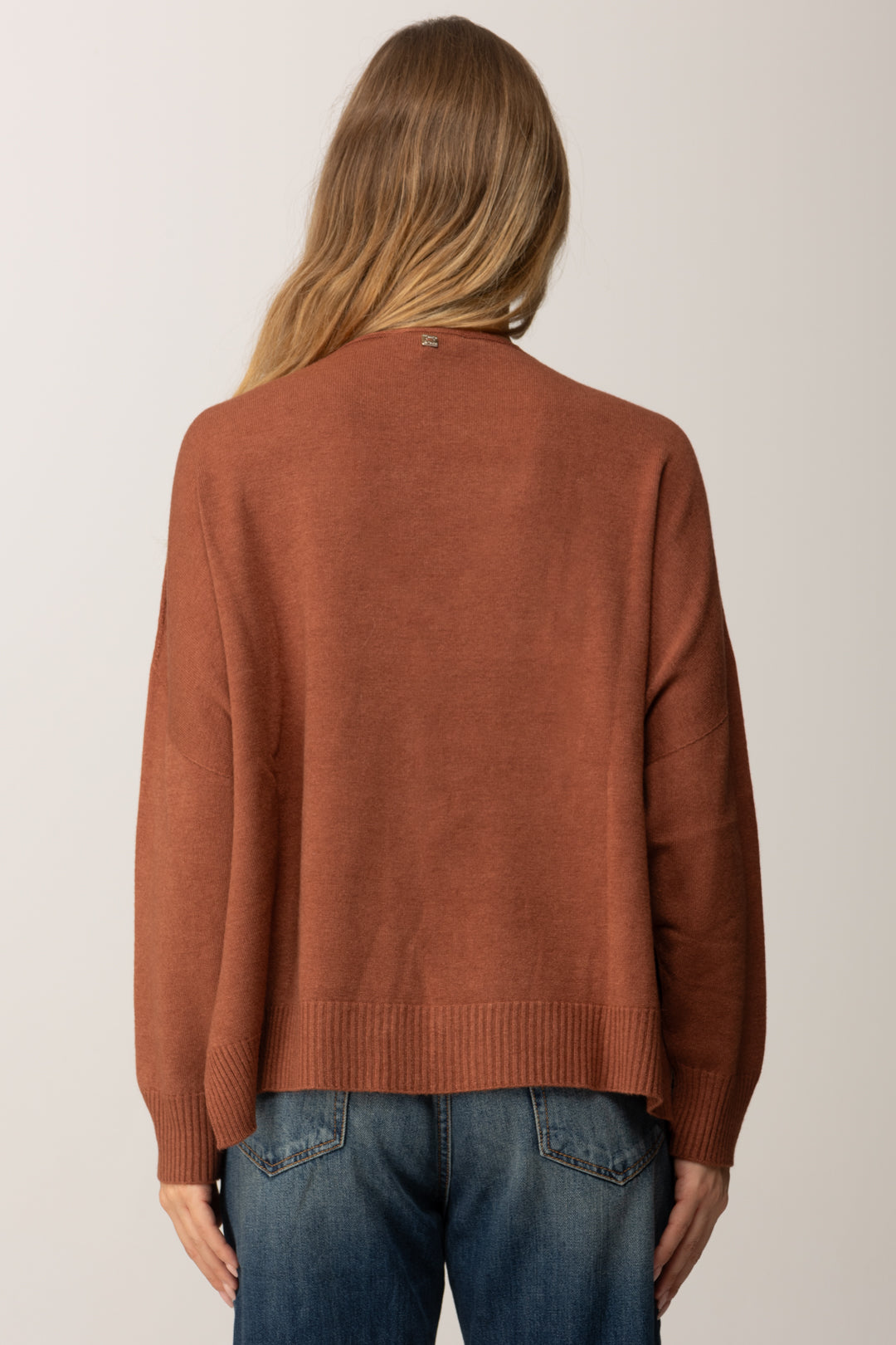 The soft and warm texture, achieved thanks to the blend of viscose, polyester, and polyamide, offers a pleasant feeling of lightness on the skin. The ribbed edge on cuffs and hem gives structure to the design, balancing the fluid fit with a touch of definition.