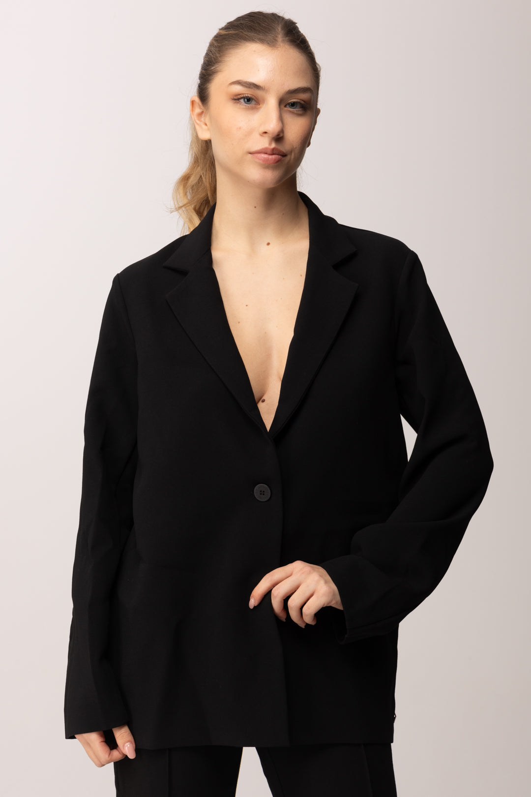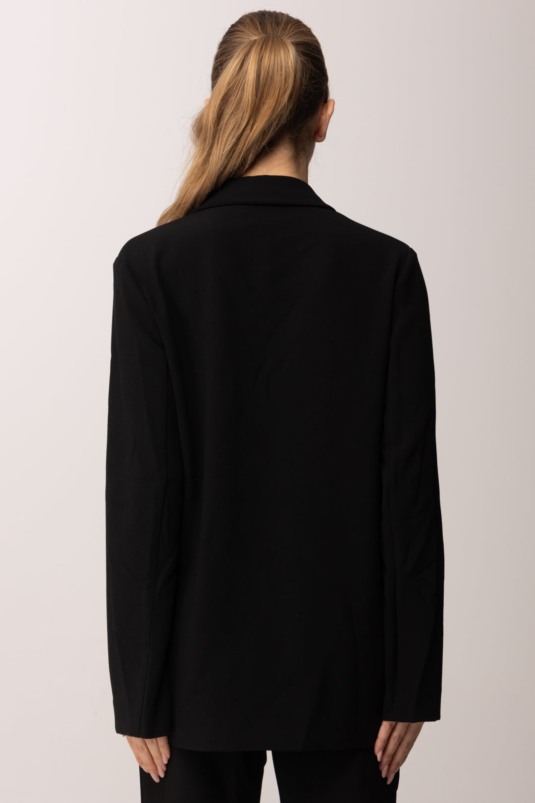 È un blazer che lavora sulla sottrazione: pochi elementi, proporzioni studiate e una vestibilità over che lo rende estremamente versatile. Un capo pensato per costruire look sofisticati ma disinvolti, dal giorno alla sera. Se vuoi un completo che sia facile da indossare, a cui aggiungere solo un top essenziale come sottogiacca, pronto per prendere parte ad un incontro di lavoro quando ad una seduta di laurea o un evento elegante ma senza troppo rigore, coordina questa giacca con i pantaloni del brand realizzati con le stessa caratteristiche. Spezza ogni formalità invece indossandola su un bottom colorato, su una minigonna o su un denim, per un contrasto più fashion e disinvolto. Perfetto anche portato a pelle o con top minimal per enfatizzare la profondità dello scollo frontale, dando un accento sexy ai tuoi look anche da sera.
