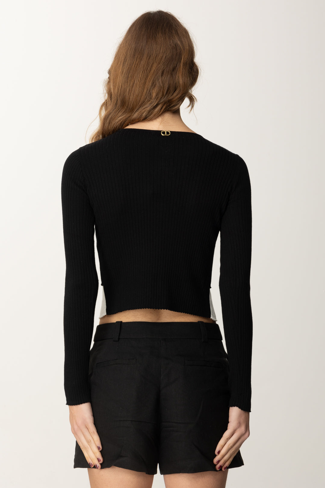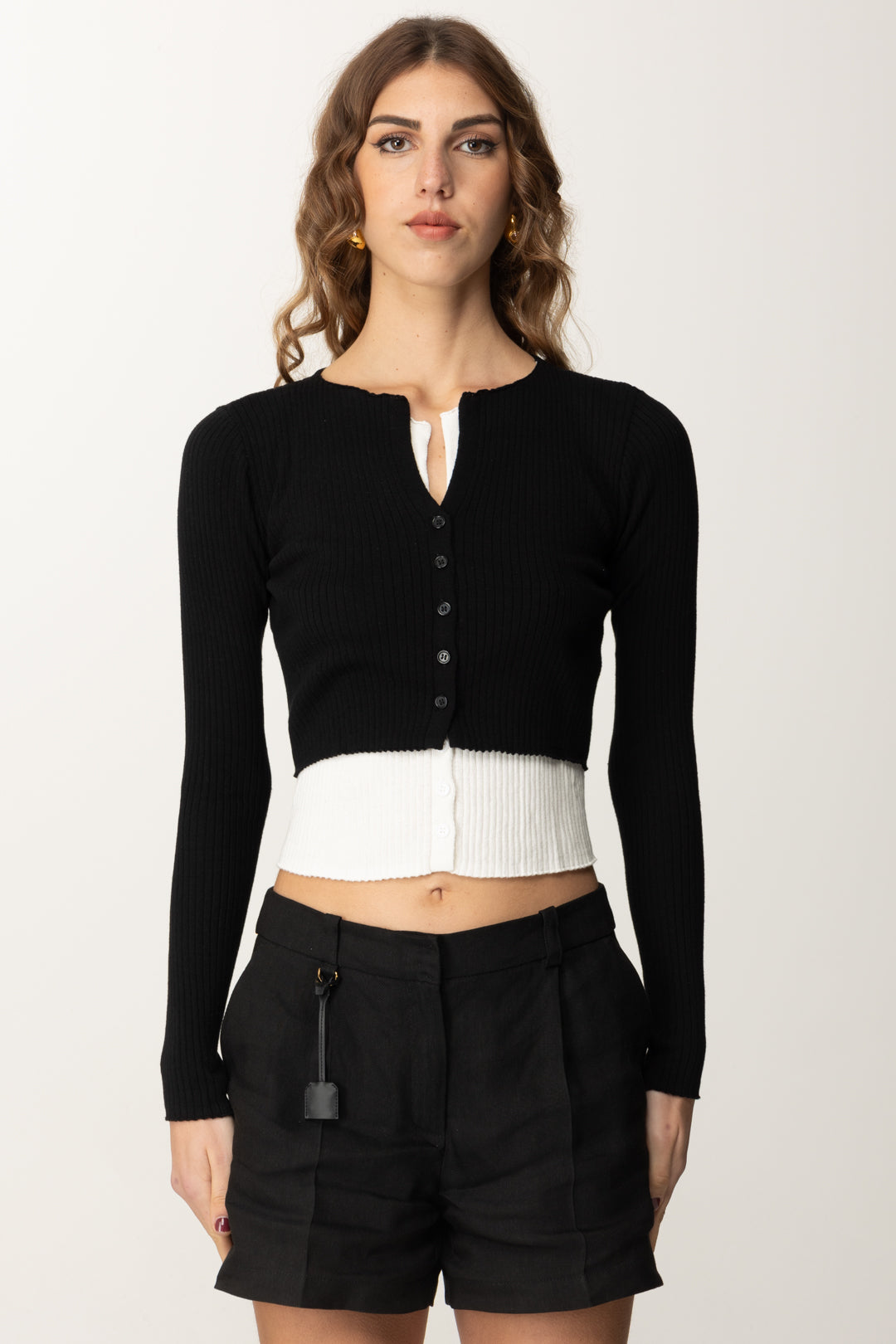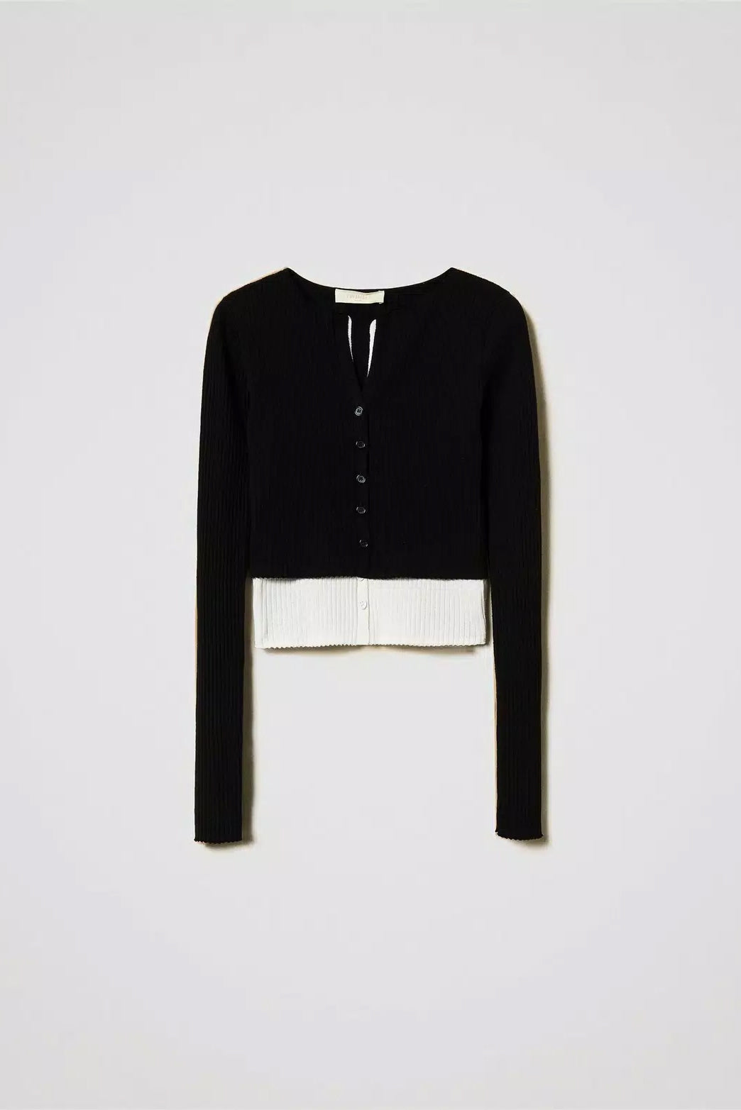 Everyday and chic, like every piece from this brand, this cardigan Twinset also adds to the items in your wardrobe that you can easily match with your business and leisure outfits, envisioning it both with a skirt or classic trousers as well as with denim. Double effect with contrasting color, round neckline, and front buttons, graceful and versatile just the way we like it.