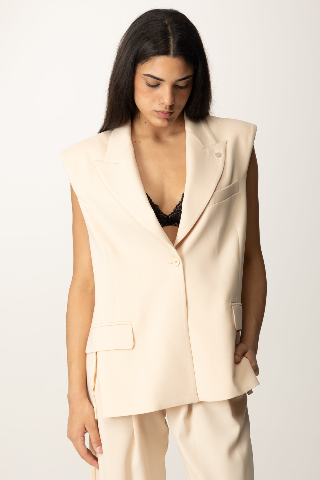 Sobrio y elegante gilet Aniye By con fit over, corte largo, cierre de un solo botón y solapas de pico. Perfecto para crear un conjunto con el pantalón coordinado, también será bonito llevado de forma separada sobre unos jeans a los que dará un toque classy, pero también sobre mini vestidos de verano y prendas menos formales para un tiempo libre en el que lucir un outfit simple pero cuidado, capa sobre capa.