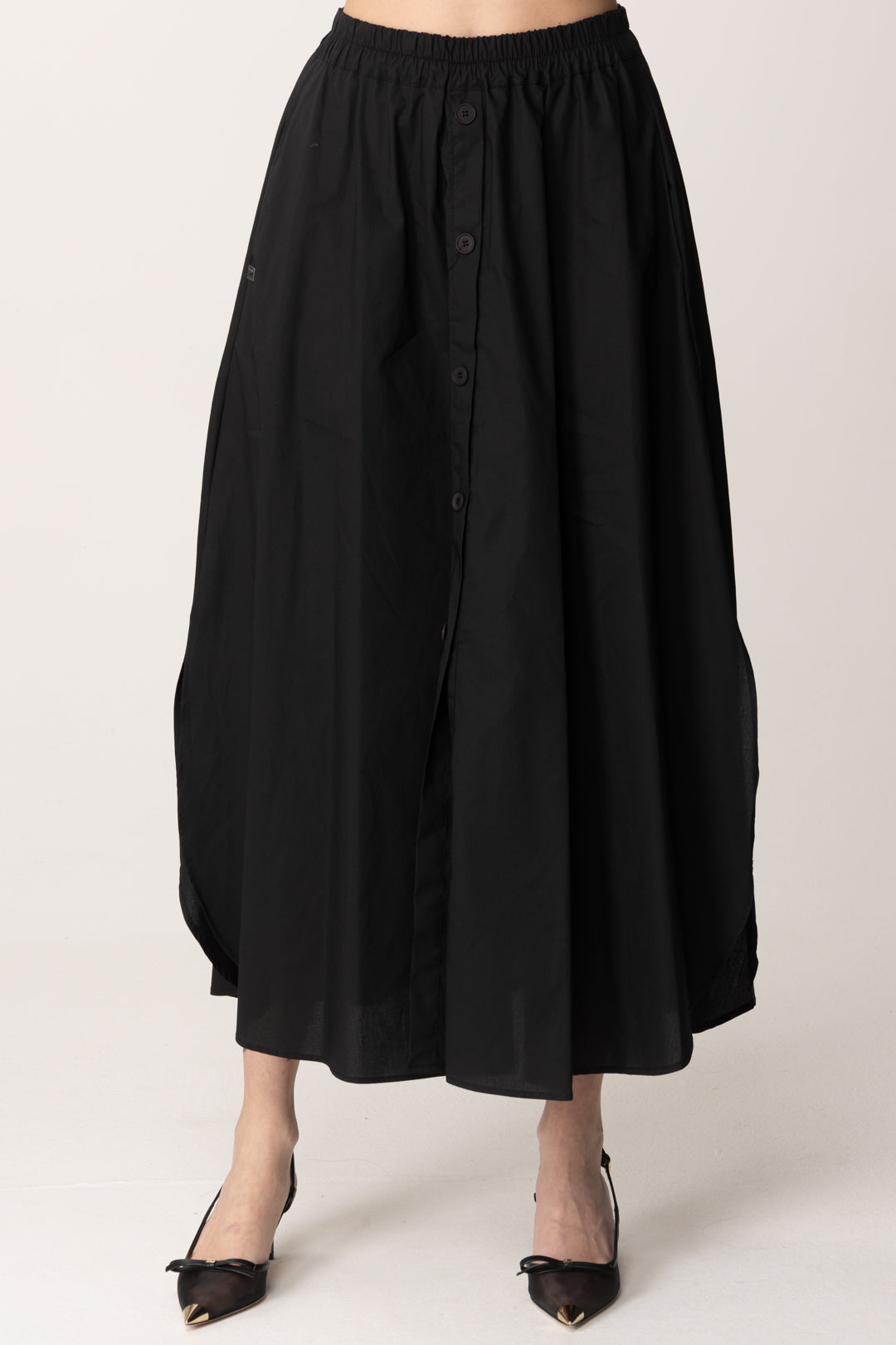 Gonna Manila Grace perfecta para tus looks de verano, con su diseño acampanado y aireado, adornado con aberturas laterales. Cintura elástica y botones ornamentales a lo largo de todo el frente, una prenda ligera y versátil, para combinar con muchísimos tops – cortos, blusados, de crochet – y calzado – con tacón y sin tacón!